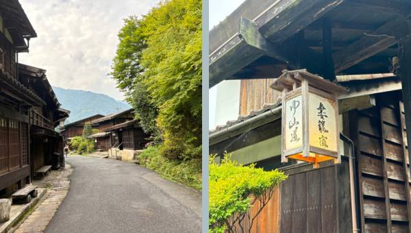 妻籠宿、馬籠宿就位在“中山道”中點,造就這兩個小城繁盛一時的年代。馬籠宿街道鋪設的還是當年的石板路,兩旁的木造房舍開設各式店家,充滿古意的吃茶店、居酒屋、藝品店、旅店林立,每家門前都種植了繽紛花卉,有的還保留了當年使用的水井與水車,更添古意;漫步懷舊街道,偶見身穿傳統和服老嫗,讓人彷彿進入時光隧道,回到17世紀的德川家康時代。不同於許多已經衰落的古道小鎮,經過400年,馬籠宿這裡每一棟房子都依然有人居住。所以在拍照時盡量不要打擾到居民,尤其是拍花草或某些道具。