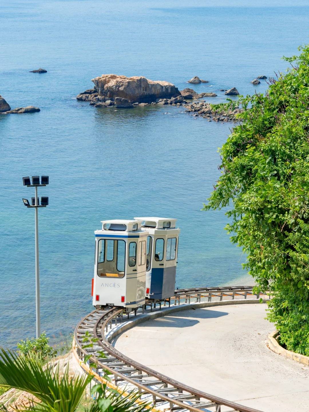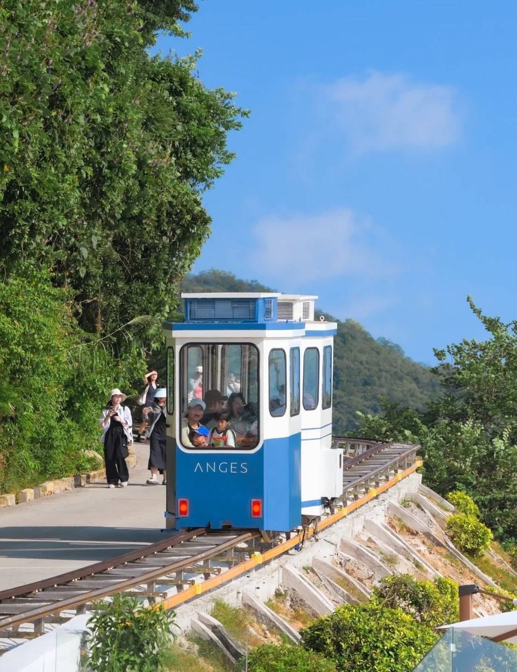 📍賣點是可以坐在小火車內欣賞天使灣的海景與懸崖,小火車設計像膠囊,與釜山海雲台的小火車撞樣。每輛小火車有兩卡,每卡可坐 4 人,所以排隊輪候時間最少 30 分鐘,小火車的原意是幫助遊客上下陡坡,所以單程只有 100 米,車程約 2-3 分鐘。小紅書有不少貼士建議早上來拍照,因為午後想一次過影到火車與海景會出現逆光情況,所以一到埗,建築奔小火車購票站。不過景區最近發出公告,因為坐小火車人流大多,建議大家在「雲海•天使灣」微信預訂車票。
