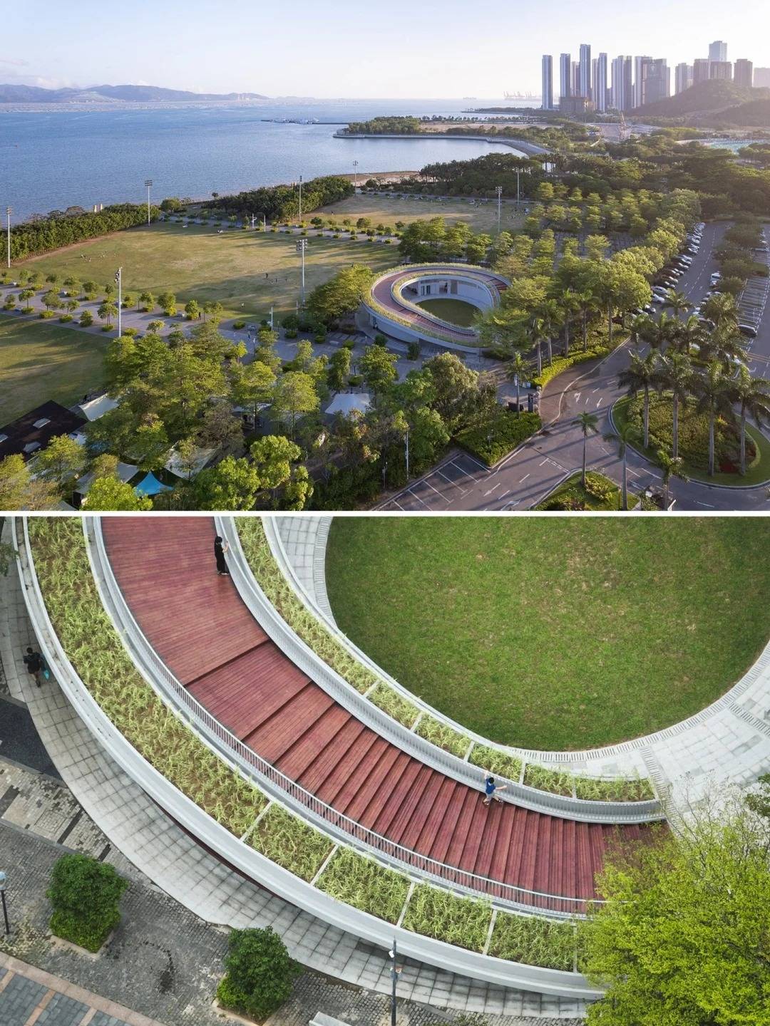 設施去年年中才開放,設計有京都庭園感覺,位於南山區的濱海中心,運動場設有草坪、智能健身區,還接連 13 公里刁的海濱走廊。洗手間位於運動場圓環步道下方,廁所圍着中央圓形草坪而設計,女廁廁格多達 22 格,因為位於運動場,更設有淋浴設施,設計貼心有型。