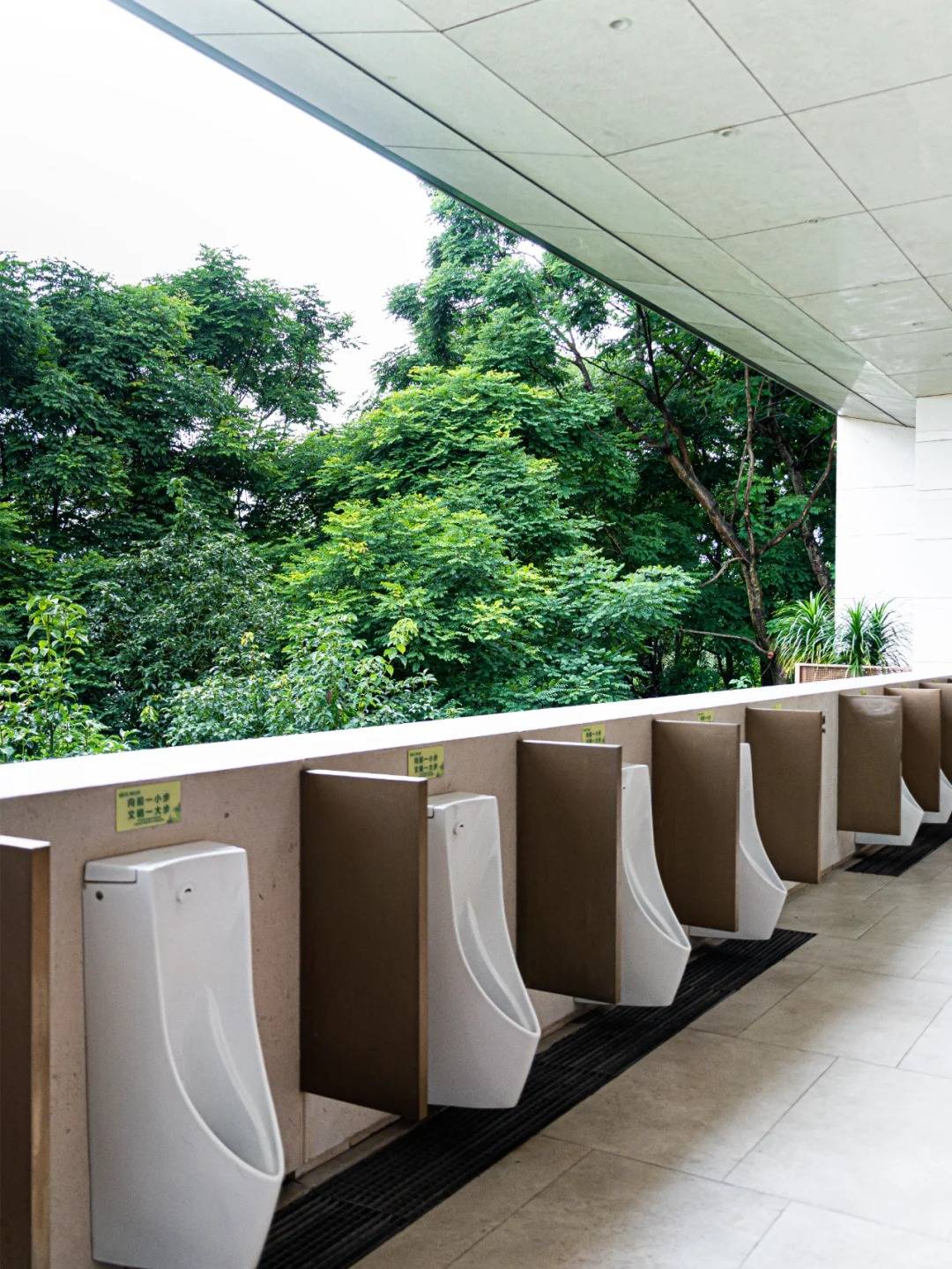 園博園內有不少特色公廁,東西區的最為特別,每區的洗手間設計各有特色,像設計生態公廁、南苑公廁、北區公廁等。西區公共廁所設計簡約但細節位多,以灰水泥牆為主調,室內有自然光;而東區的洗手間亦以簡約為主題,但內裏設計了天井,一樣勁有禪味。