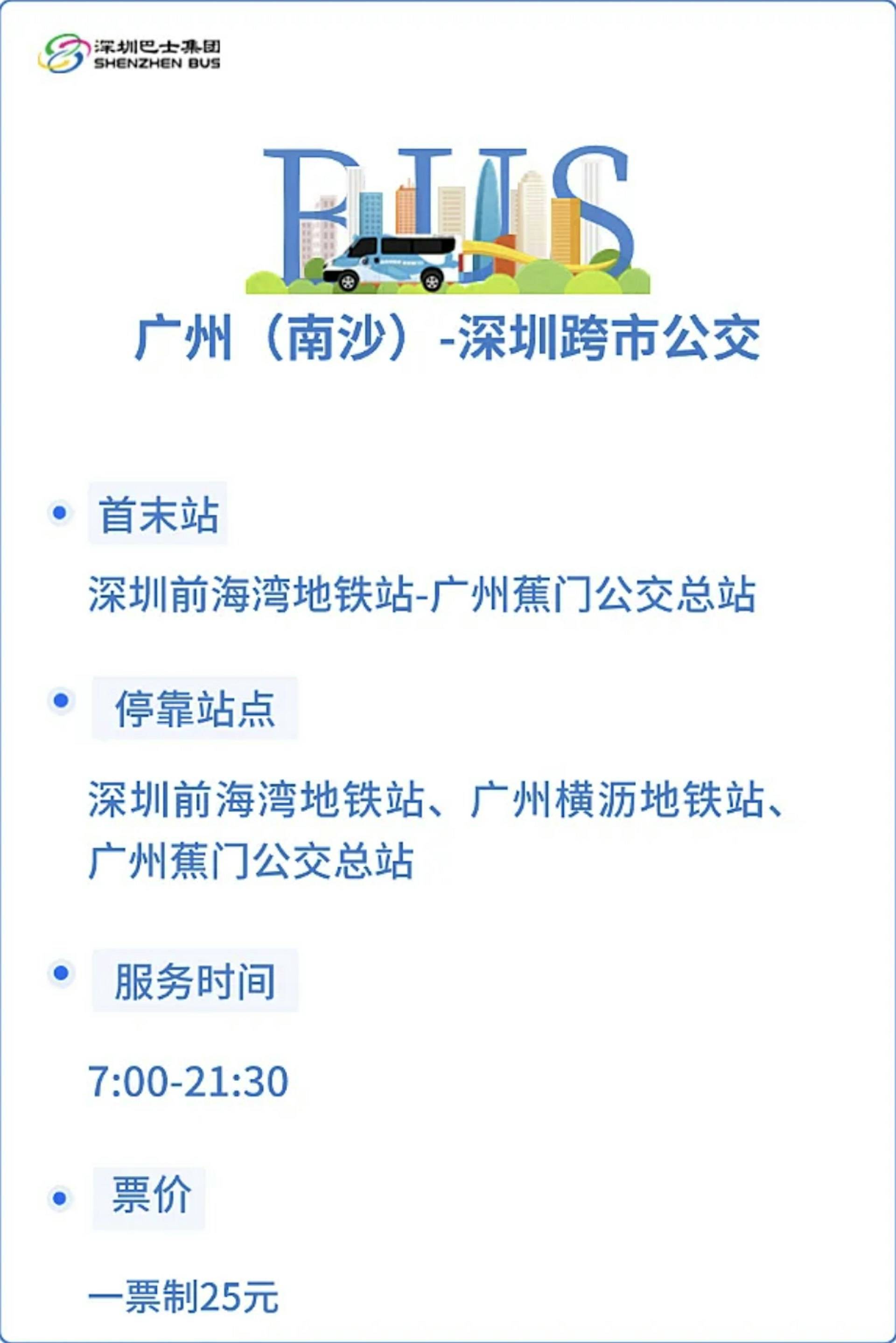 中途站:深圳前海灣地鐵站 ➡ 廣州橫瀝地鐵站 ➡ 廣州蕉門公交總站