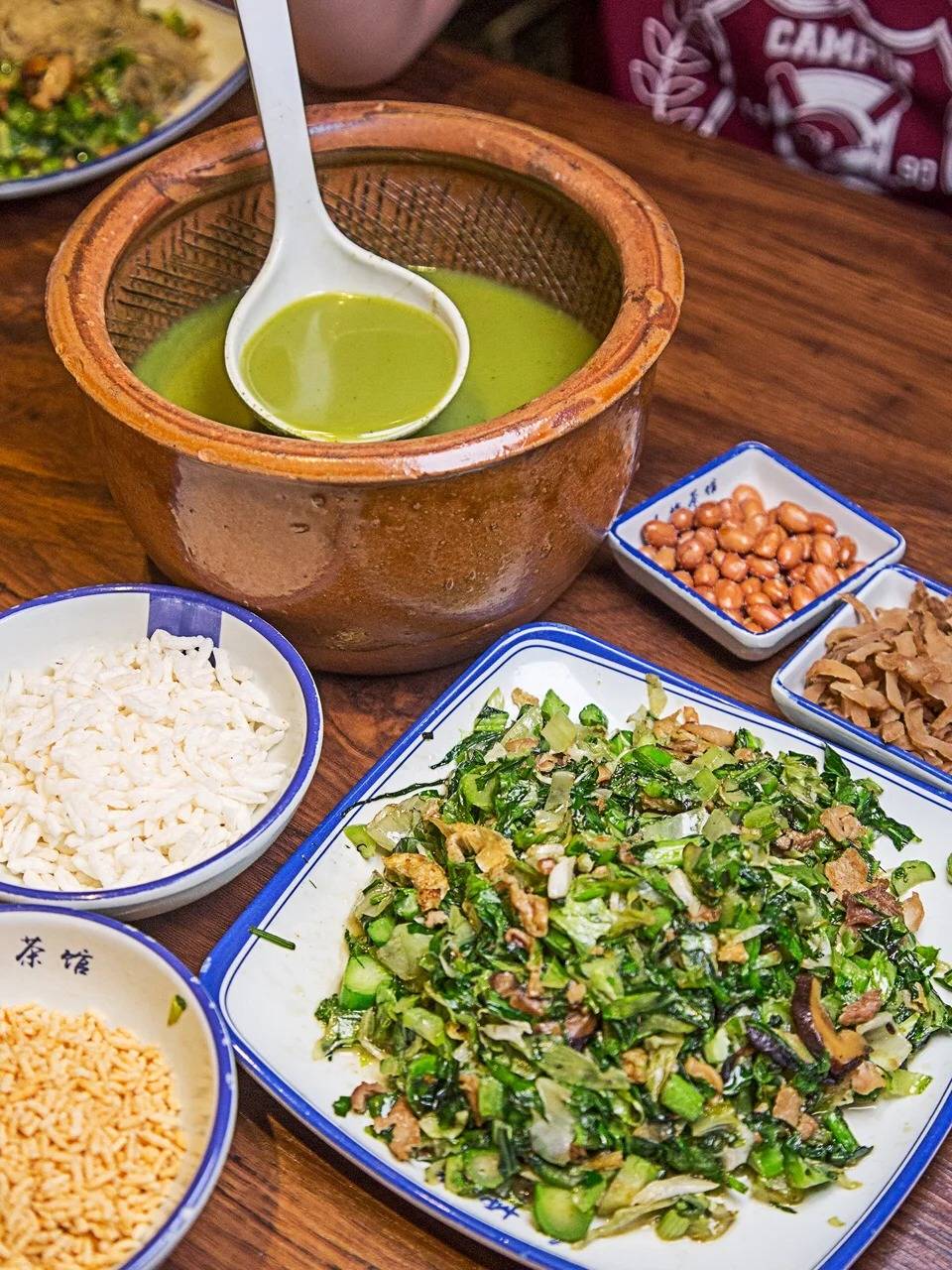 炒米鬆脆不油,擂茶的菜料則是現炒的,有冬菇、紅蘿蔔絲及豬肉,炒得惹味。先把菜料加到碗底, 倒入茶湯,最後撒一把炒米及花生等,集甘、鹹及脆口於一身。擂茶套餐價錢 ¥38。建議叫多點餐廳招牌炒米,炒得爽、而且米粉很幼,香港比較少見。