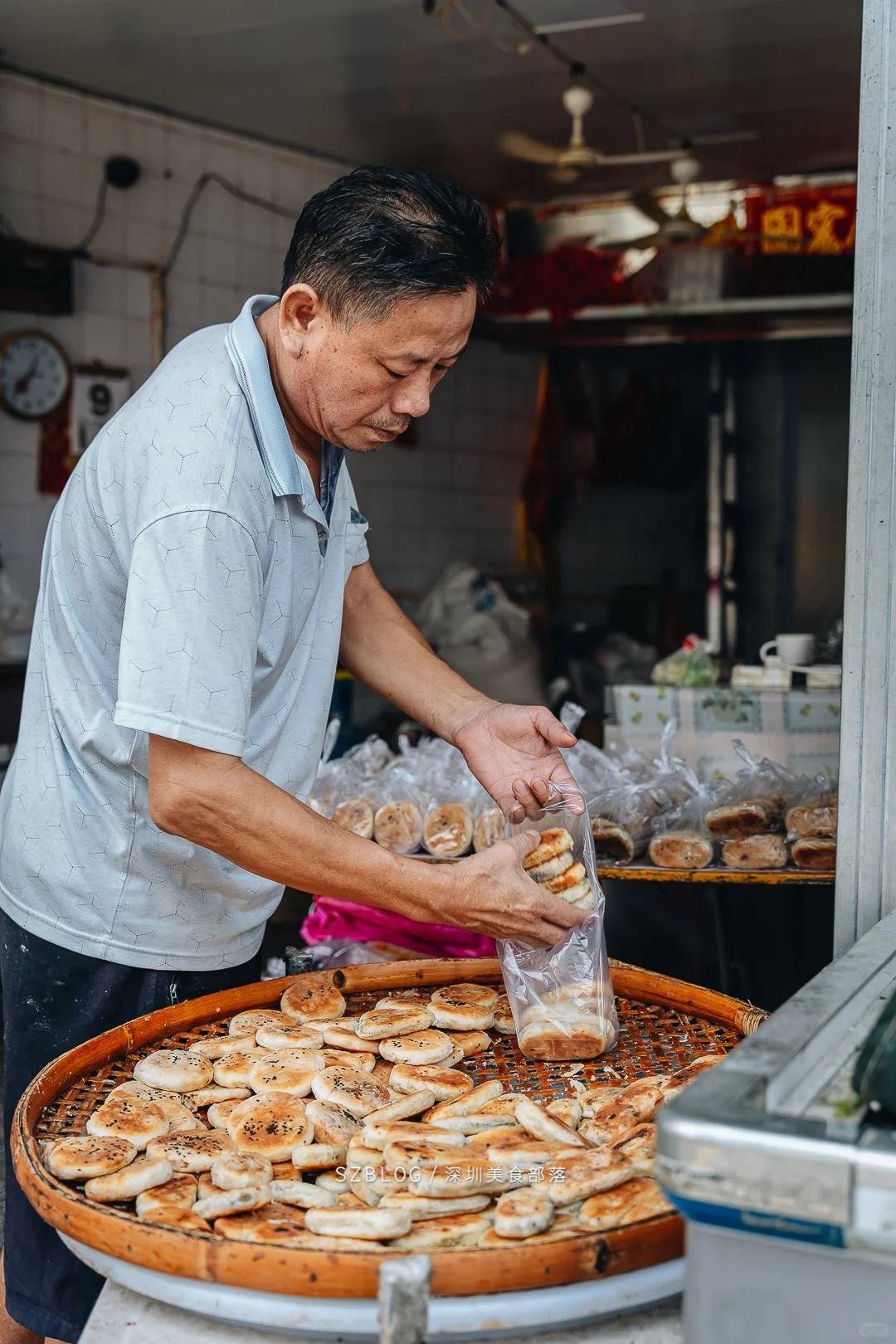西鄉市場附近都有幾間賣綠豆餅的,但以這間人氣最盛。未行到舖頭,你已會聞到烤綠豆餅傳來的香氣,因為所有餅類都是現場製作,你會看到餅師製綠豆餡、紅豆餡、也會看到他們在包製缾食,還會不時出爐,所以經常都可以買到新鮮綠豆餅及紅豆餅,而餅皮保持層層鬆化、沒有「回油」的黏答答口感。特別多人讚綠豆餅,不甜又粉糯。¥13 一袋,有 10 個餅,會唔會太抵食?