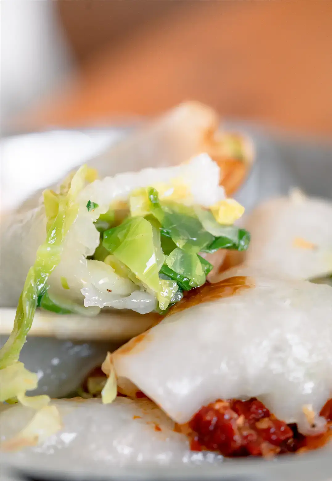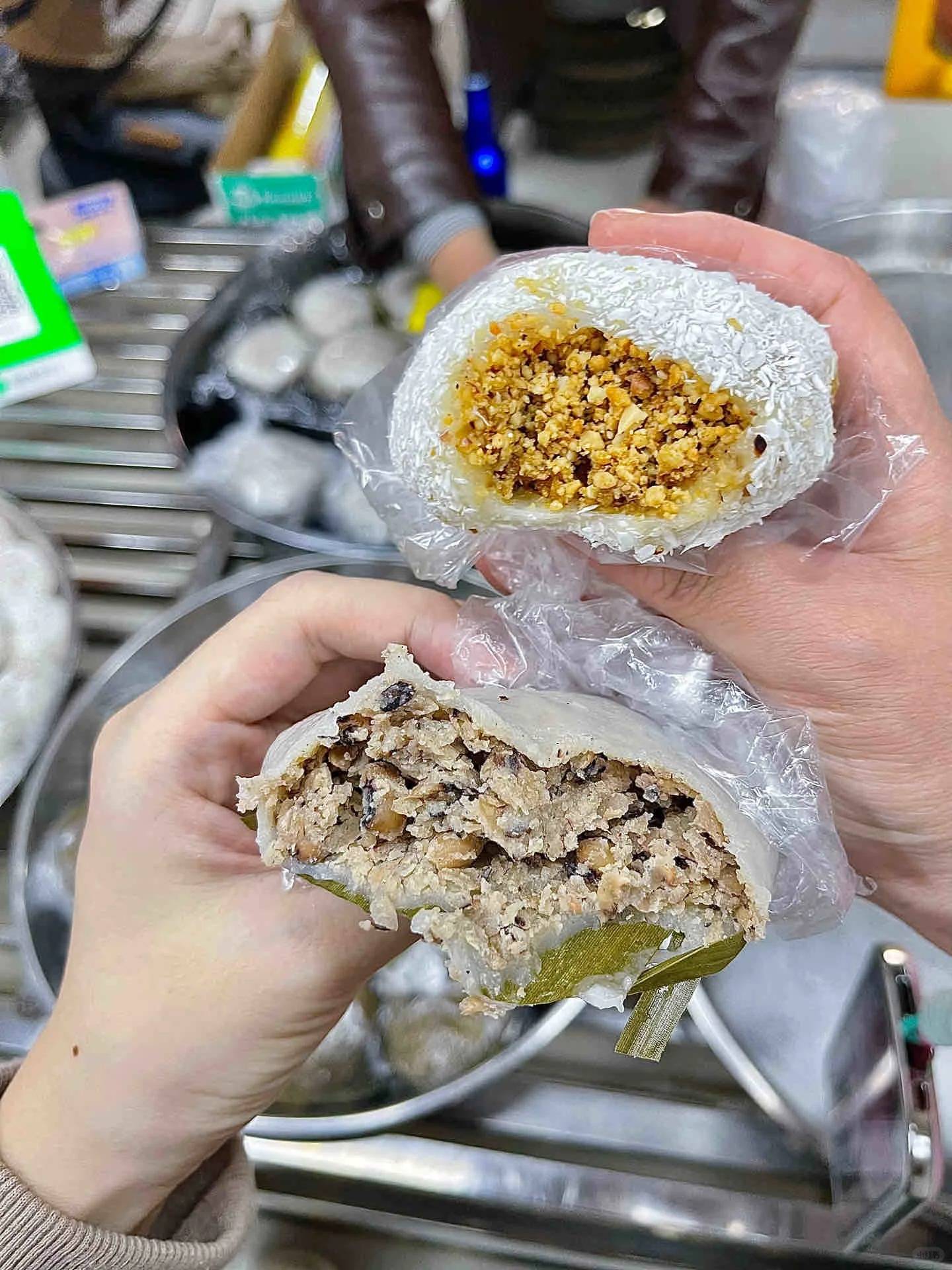 香港比較難吃到這款小食,小店在西鄉市場外圍,在這裏經營超過 20 年,小米餃啱晒煙韌控,餃皮以紅薯粉製,蒸熟後口感煙韌好𡁻又彈牙,裏面的豬充滿油香,吃時記得加辣醬及蠔油。另一款包着生菜、魷魚及花生的菜粿也是店家招牌。 小米餃及菜粿各 ¥12。