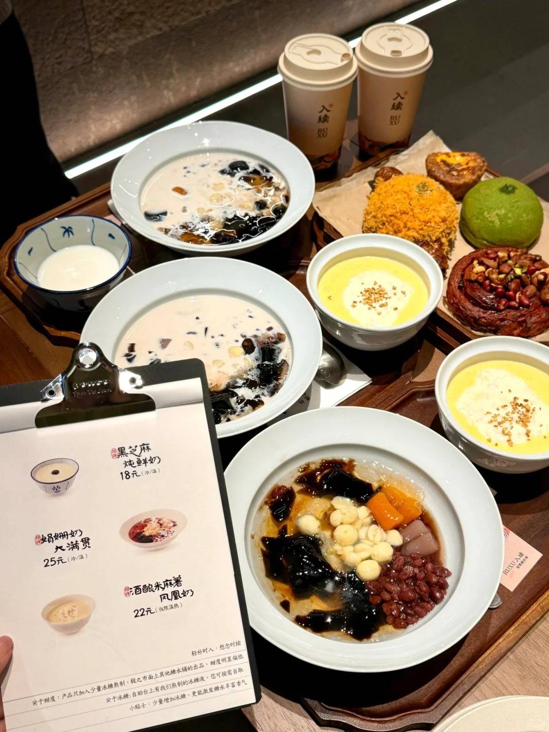 其他必食還有現磨的黑芝麻糖、金桂桃膠芡實馬蹄沙、熬• 老紅糖薑撞奶等。糖水價錢平均 ¥22-28 。舖頭屬茶飲品牌「茶理宜世」旗下,也因此引入自動奶茶極沖泡鴛鴦咖啡。
