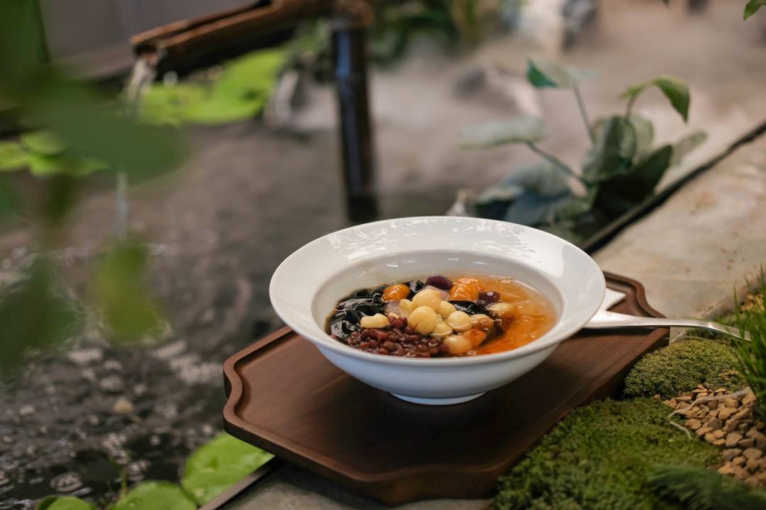 源自廣州,有 9 家分店的靚裝甜品店,裝修絕對 100 分,以簡樸又具禪味中式庭園為主軸,店裹融合了竹林流水、襌意木調及綠油油的植物,室內設計優雅有品味。主攻養生中式甜品、輕食及鴛鴦咖啡。
