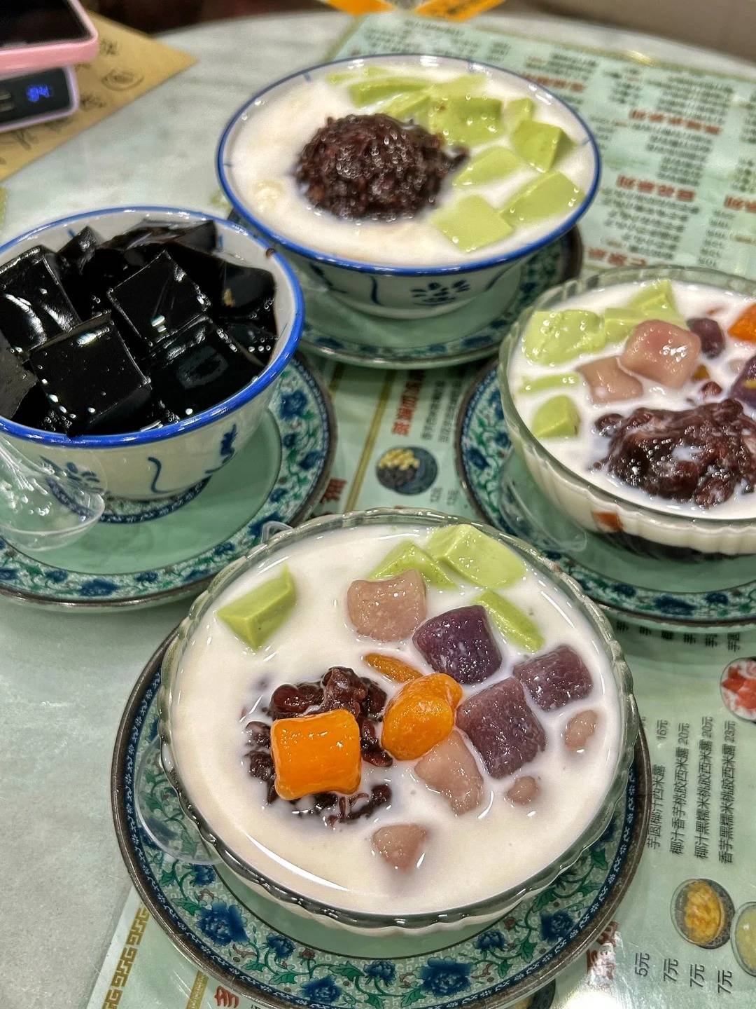 糖水款式不花巧,主打順德雙皮奶、龜岺膏、豆腐花、椰子奶凍、石磨芝麻糖、西米露、楊枝甘露及綠豆馬蹄爽等傳統糖水,最叫人驚訝是糖水價錢由 ¥7 起,最貴只是 ¥25,傳統的芝麻糖、綠豆爽、豆花賣 ¥10 以內,完全以平靚正取勝。