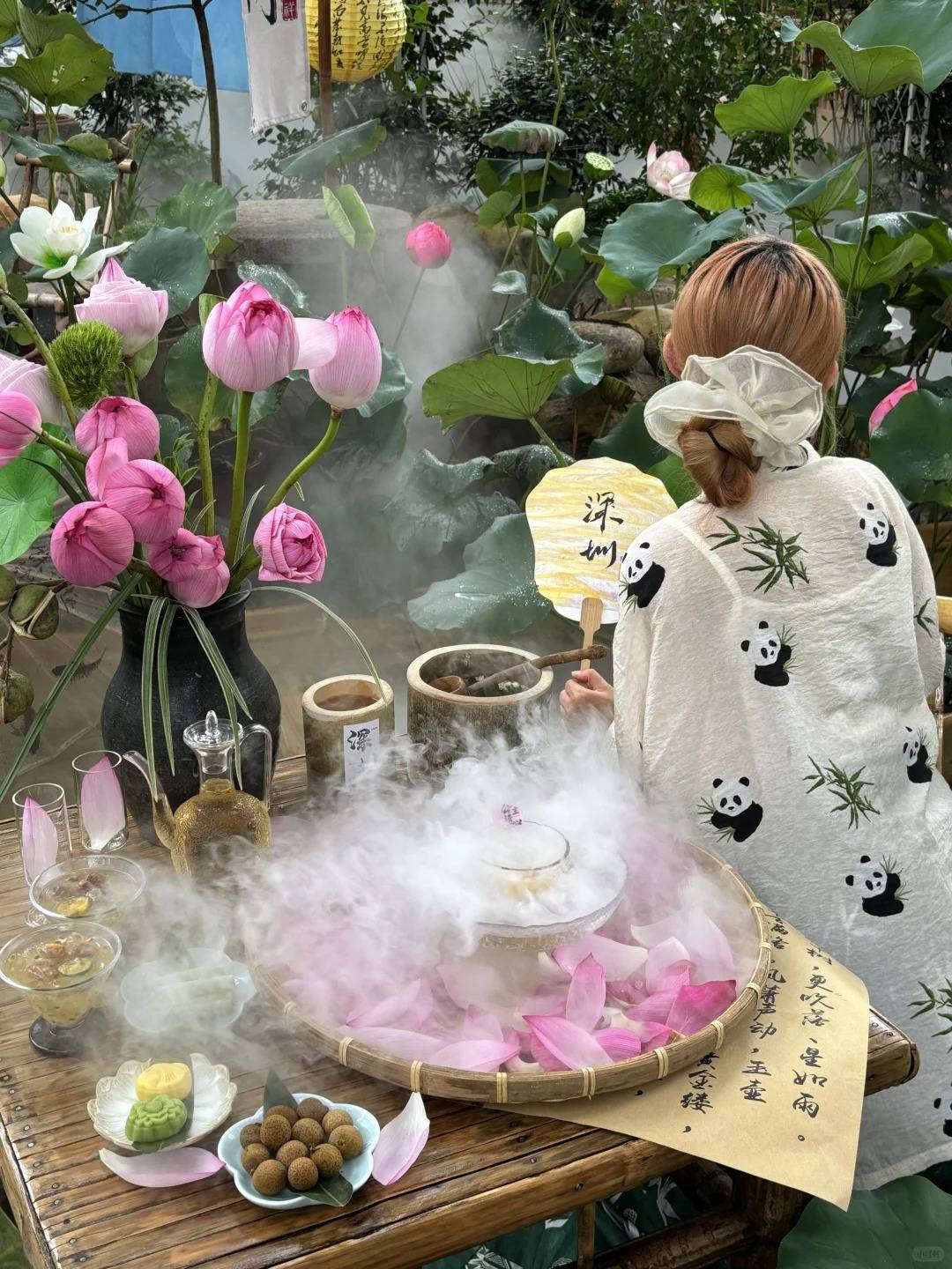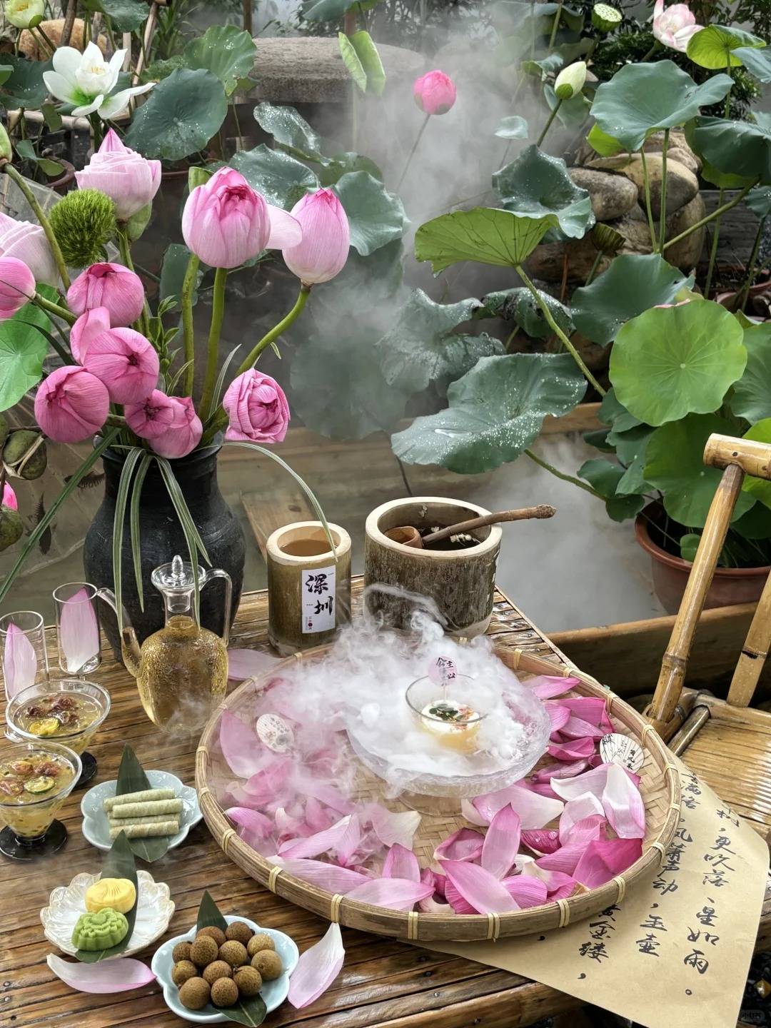 富現代感的荷花園也一樣仙氣飄飄,茂密的樹蔭下的荷花小池充滿仙氣,連在這區享用的下午餐也以荷花作主題,影到個個變神仙姐姐。