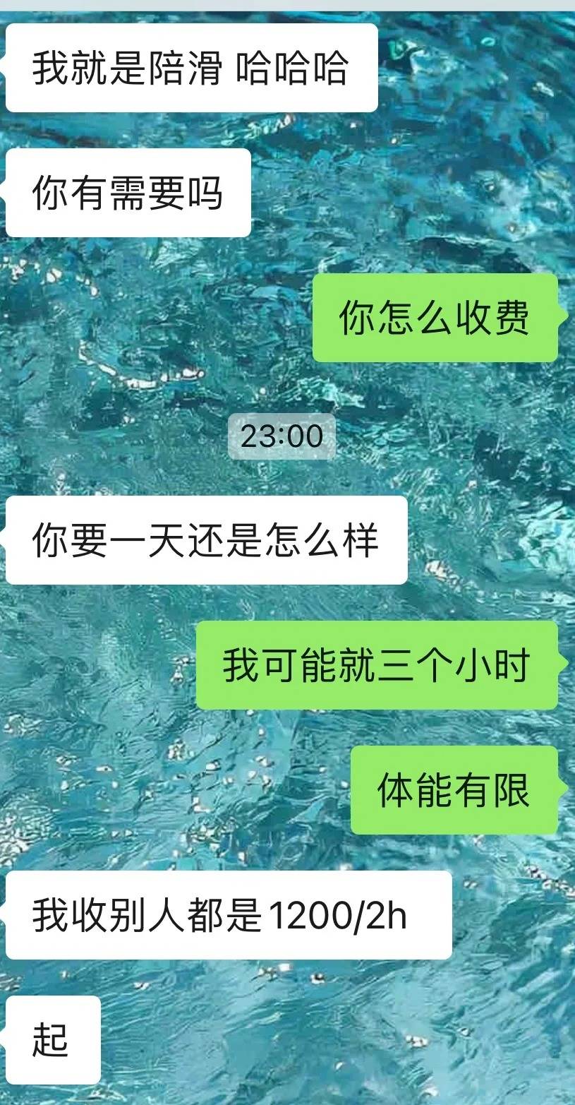 網友不禁留言:「禮義?廉恥?地址?」、「這雪我能怒滑五趟」似乎相當受歡迎。大家當然最關心收費,普遍是 ¥100、200 至 300 一小時不等﹐價錢都不平,但不少女士似乎嫌 1 小時不夠喉,連帥哥們都在微訊上回「體能有限」!