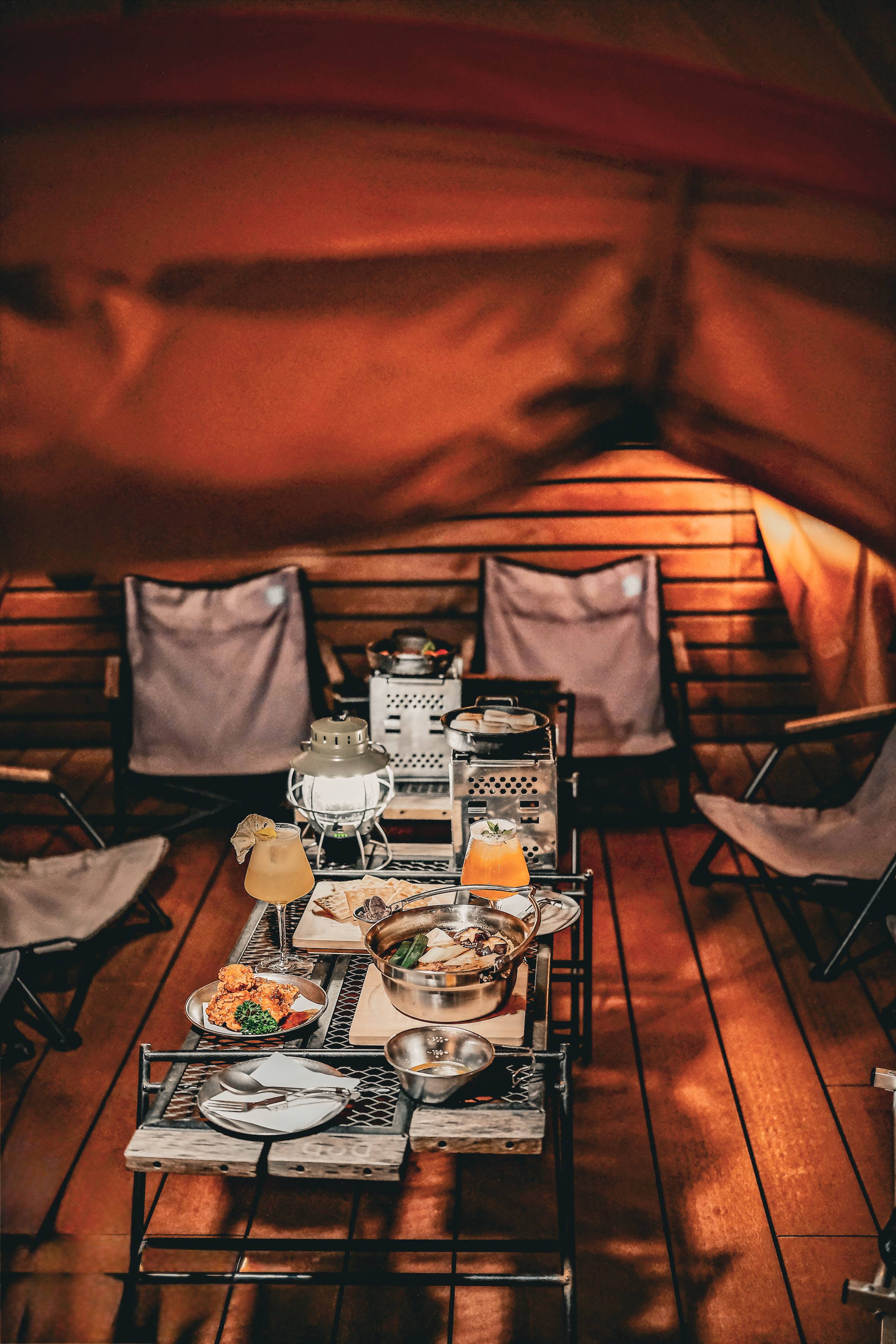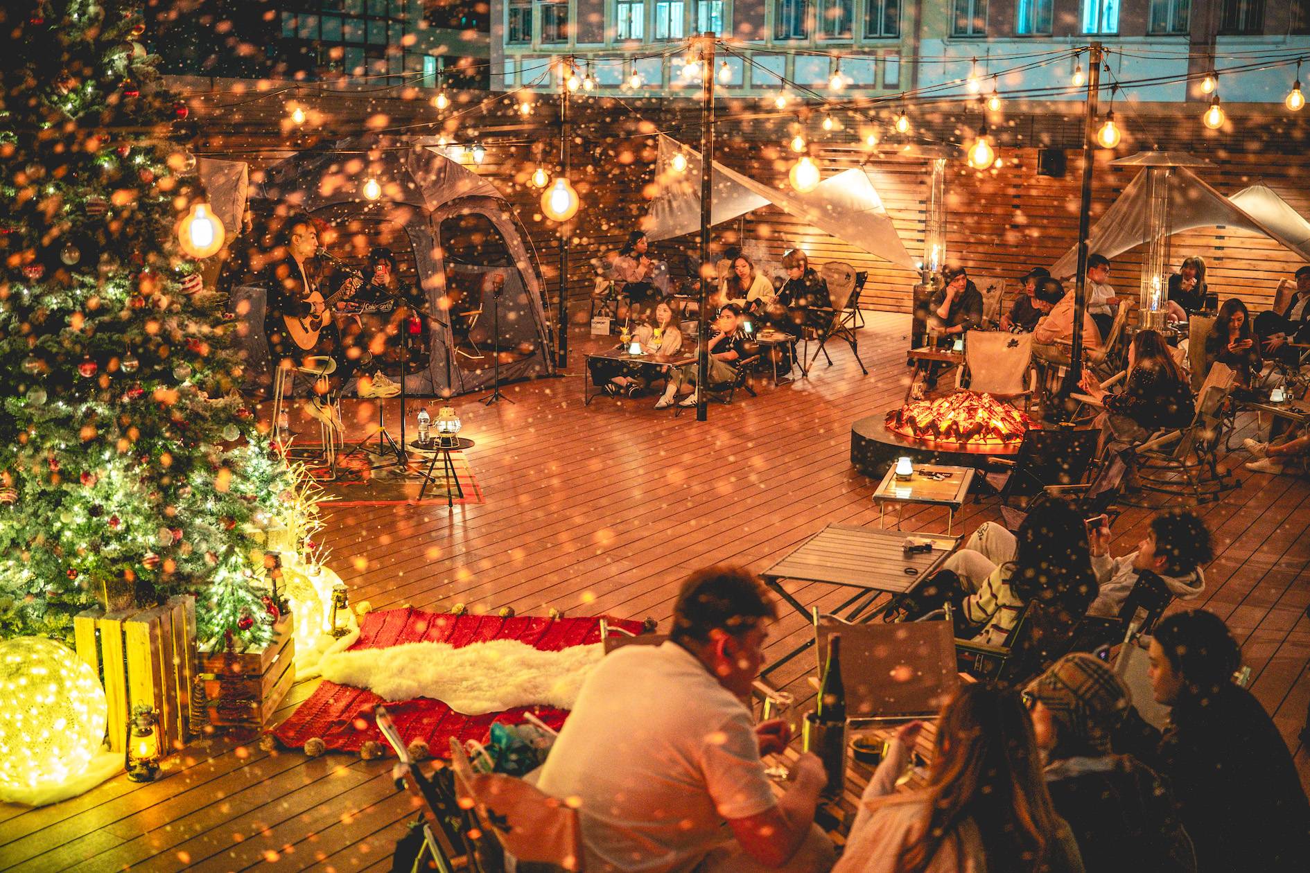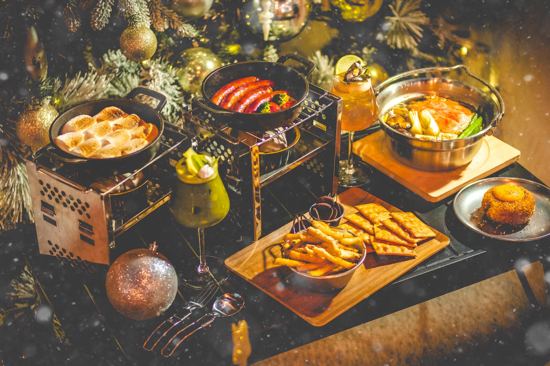 這間餐廳以露營為主題,戶外的酒吧在聖誕期間更會變成「白色雪地」,由即日至 1 月 1 日都有飄雪效果,每晚 6pm 開始,每隔 15 分鐘飄雪一次,幾有去了北歐過聖誕的感覺。