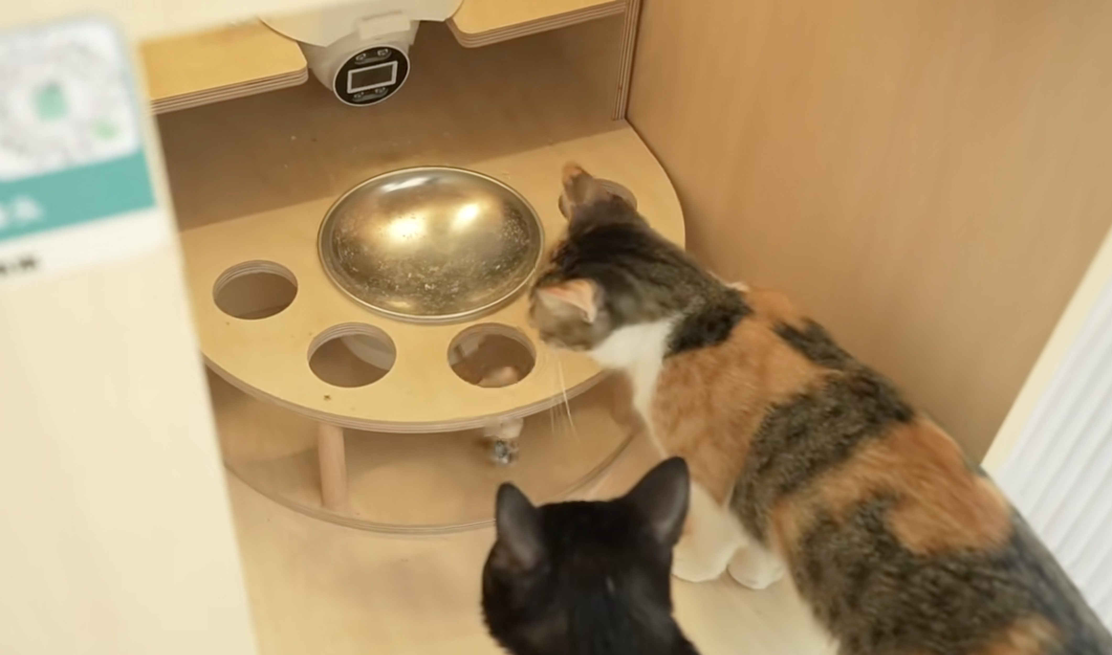 3️⃣擼貓:擼貓時,愛貓人士可以在站內自助購買罐罐或貓零食,也設有一部全智能投餵逗貓機,掃碼通過 app 為貓貓投餵零食