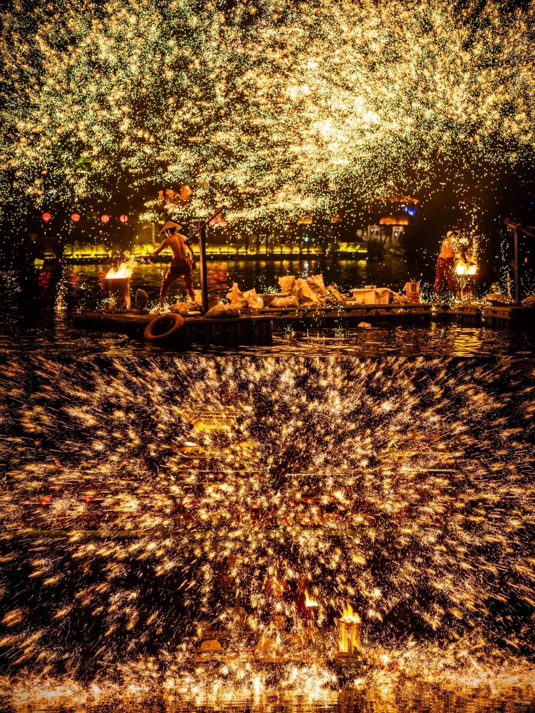 跨年以「錦繡盛市·夢華錄」為主題,雖然沒有其他地方的跨年煙花大型,但難得近距離一看由春秋年代流傳下來的非物質文化遺產「打鐵花」技藝,另外還有水面火壺、風火輪等。場內還有「夢華錄花月宴」、粵潮小吃街、70 多場國風演繹、音樂🎵宴會、非遺鼓樂、民族特色鼓舞等。