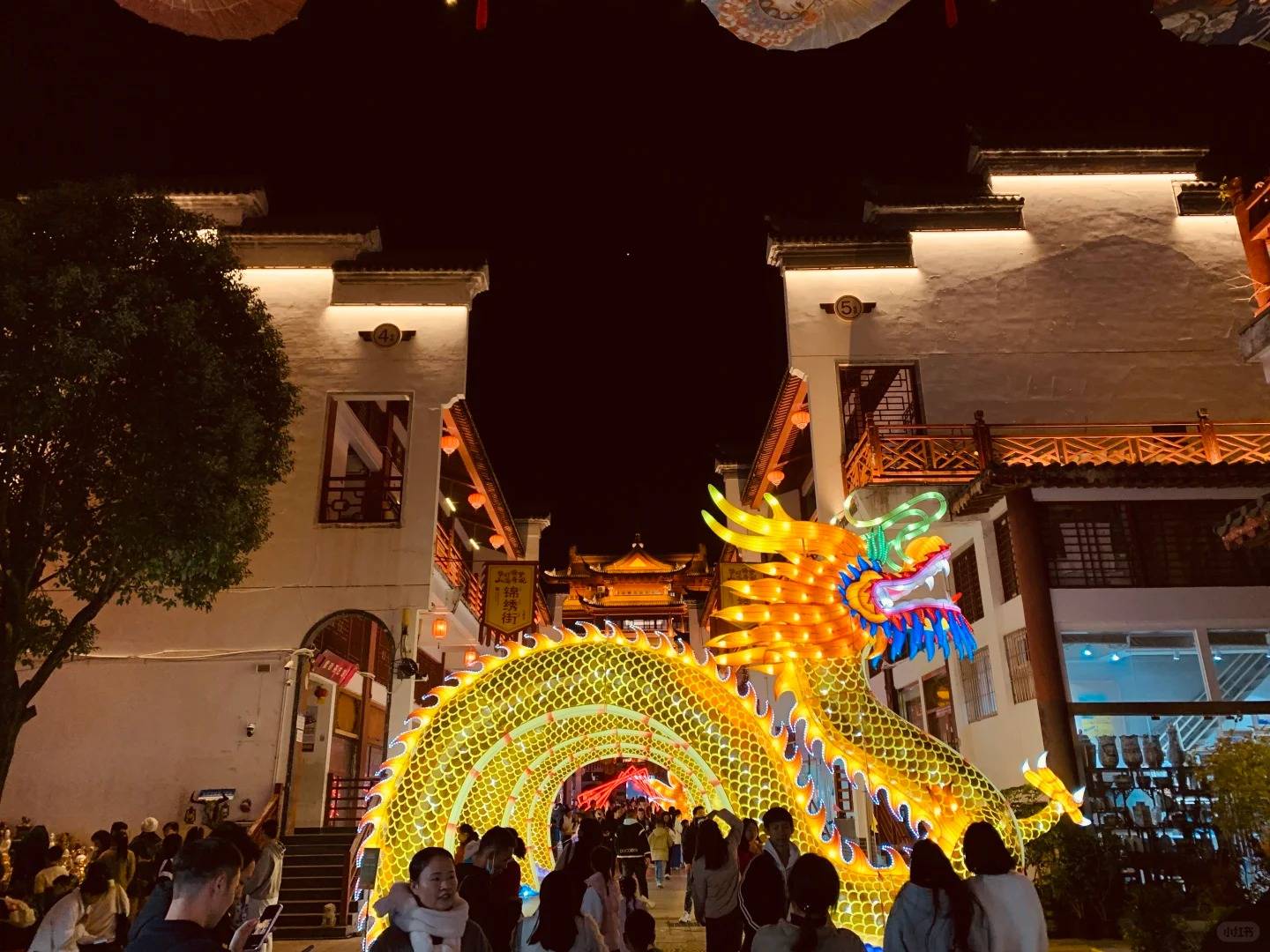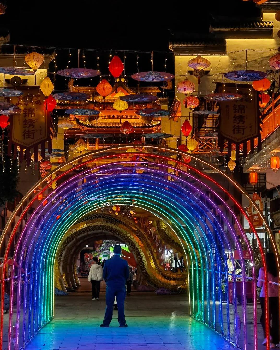 園中整條古裝街也張燈結綵,大街上有幾款大型光影裝置,如祥龍隧道,很是好看。