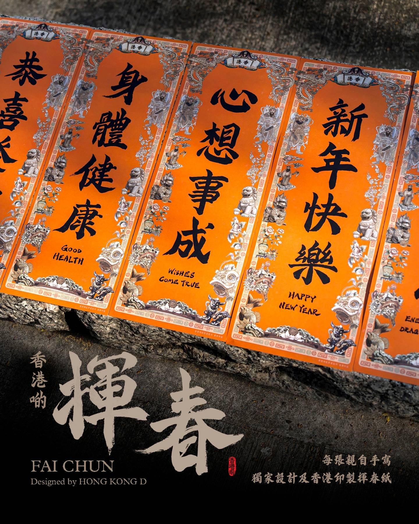 更由他親自揮毫寫揮春,除了可以寫中文、英文都得,以表達香港中西文化融合的特色。他亦會寫一些傳統而且近年少見吉利字句,例如「千祿俱臻」、「百福駢臻」、「船頭旺相」及「滿堂吉慶」。本周二(1 月 14 日)開始營業﹐反應熱烈,唔少市民不借久等都不怕。有興趣打算想購買 4 張以上揮春的話,建議先私訊 Hong Kong D。