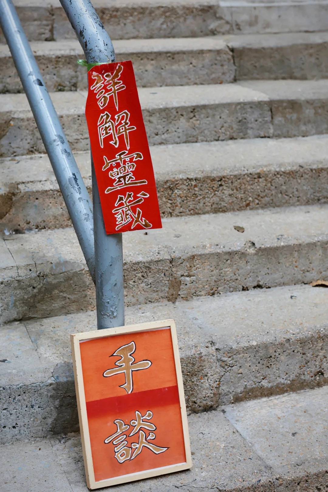 嚤囉街有幾個字畫攤檔,而且非常有特色,畫法家會把紅彤彤的揮春、對聯與字畫掛滿旁邊的石樓梯,形成一道中上環的獨特風景。這裏有多個書法家、藝術家開檔,風格、字體不一樣、金漆或墨寫成的都有。有現成寫好的,不怕等的話也可請藝術家即席揮毫。