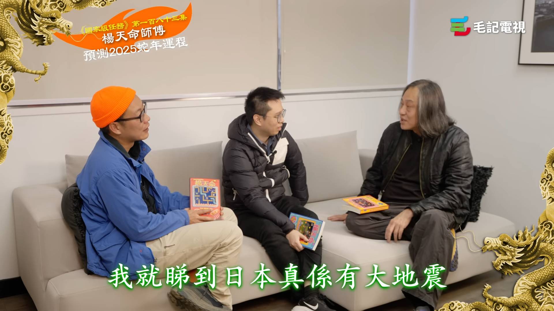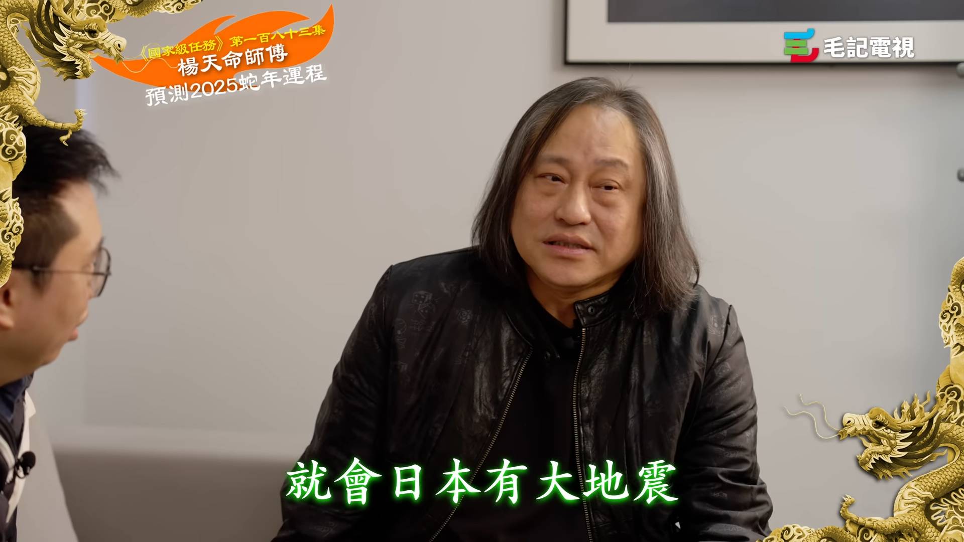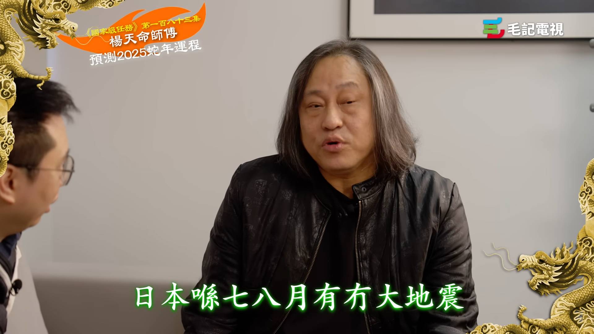 按照楊師傅在節目裏批蛇年會日本會否出現大地震,他表示! 🔹楊天命師傅答:「我就專登問個天,日本喺 7、8 月有無大地震?7 級或以上嘅大地震,個天話係有嘅」 🔹楊天命師傅答:「喺 7、8 月就真係暫時唔好去日本住」 🔹楊天命師傅答:「都多人有事」!