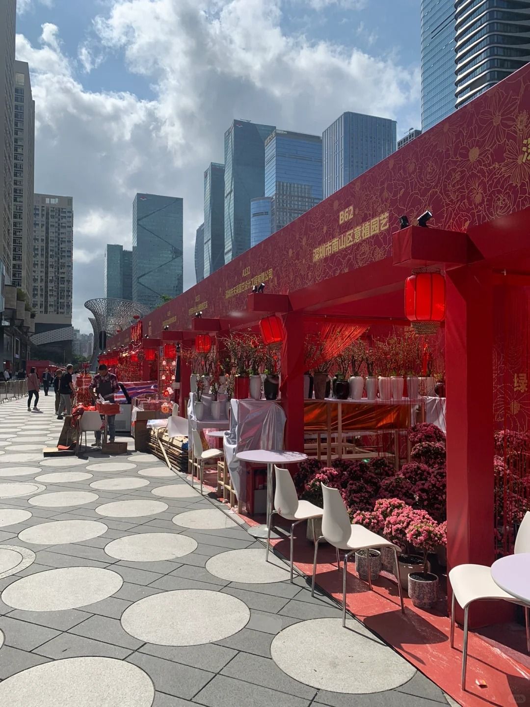 有超過200個攤檔,現場有巨型福運蛇玩偶及 5 個超絕毛絨 IP 裝置,花市期間更安排了潮汕英歌舞、醒獅表演等非遗文化活动,推高傳統春節氣氛。商場更設設有深圳首座12米篝火營地,還有戶外露天電影、花火放映夜等活動。