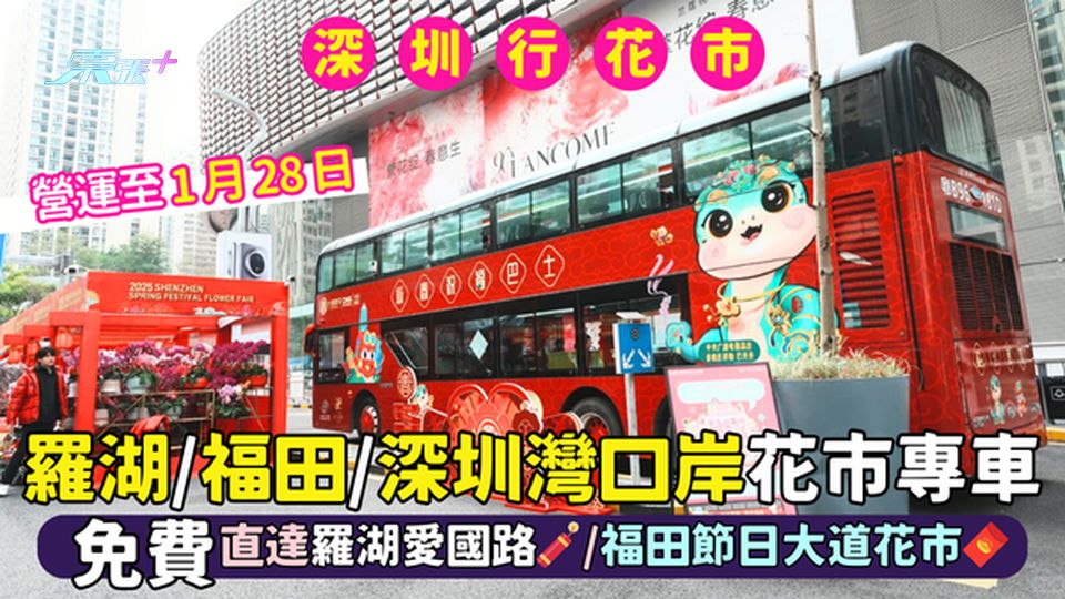 【年宵2025】下星期三就係大年初一,正式踏入蛇年,相信今個周末及農曆新年假期會有不少港人北上深圳辦年貨或玩樂,原來羅湖口岸、深圳灣口岸、福田口岸都有免費花市專車接載港人到該區的年宵花市,部分更會途經多個港人北上熱門去處,非常方便又唔慳埋車錢,3輛免費花市專車會營運到1月28日。