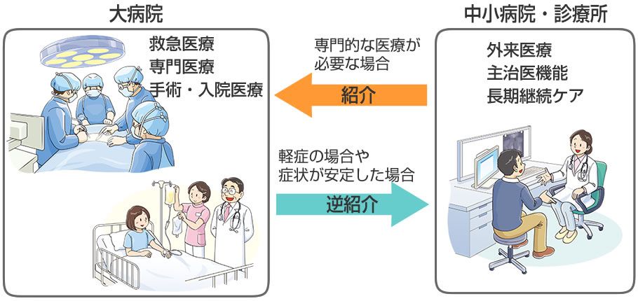 日本醫院的規模以提供的病床數量分別,一般以 200 張床位為界限,多於 200 張床位的「大」醫院,同一病症,會比小型醫院收取較高的特殊費用(2022年日本政府規定,普通診症大概是7000日圓)。如非急症(如重病、嚴重受傷),一般建議先到小型醫院,再由小醫院轉介。