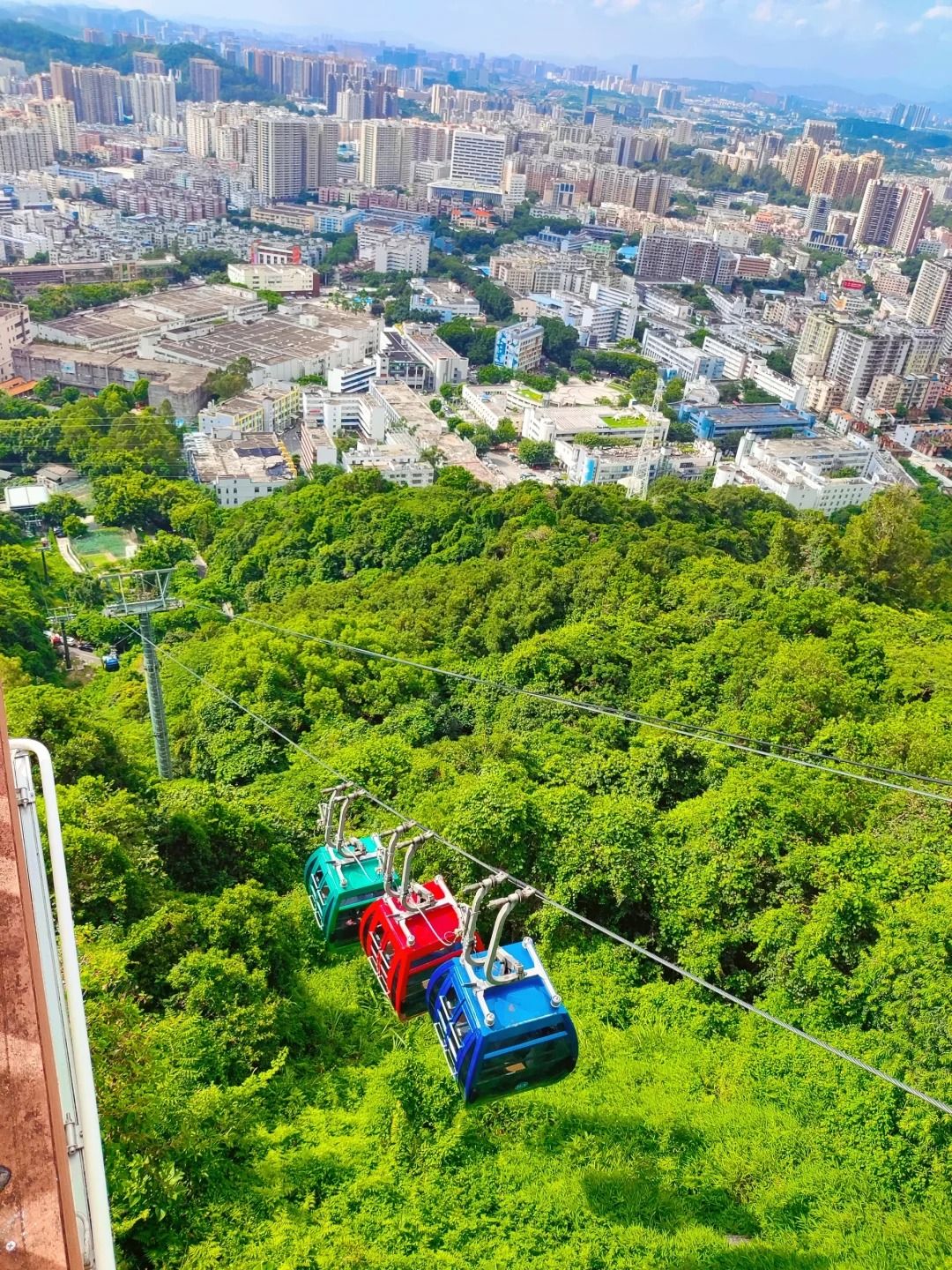 登頂可以看到深圳水庫、梧桐山、深圳高樓平安金融大廈等景色,黃昏更可看超美日落,慢慢行、打下卡,登頂不過45-60分鐘的事情,腳程快 30 分鐘可登頂。唔想行,一樣可以登頂,乘坐纜車直達山頂,省時省力。