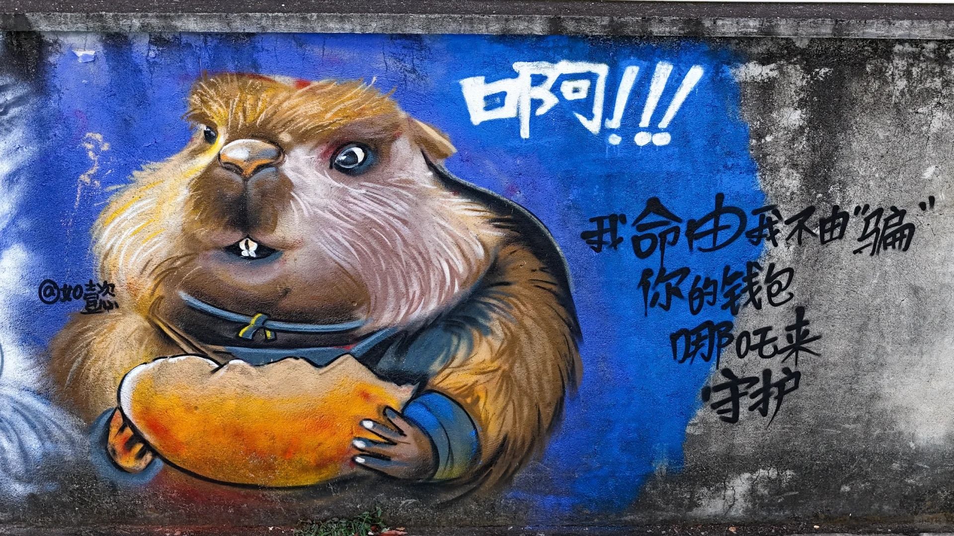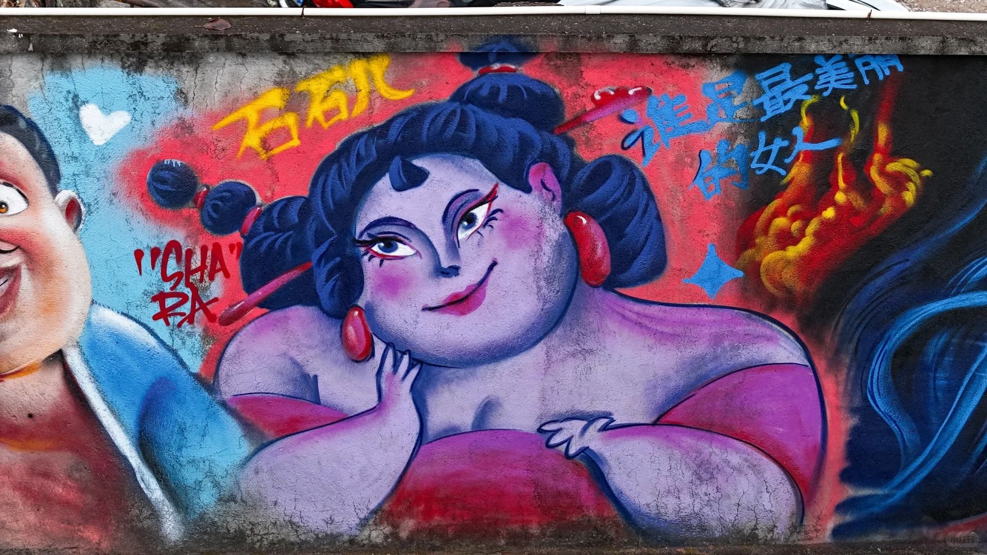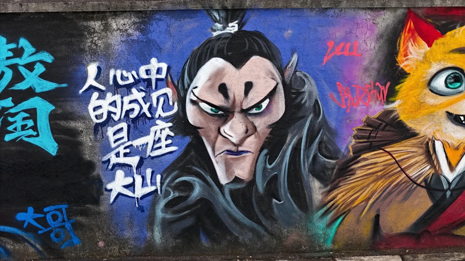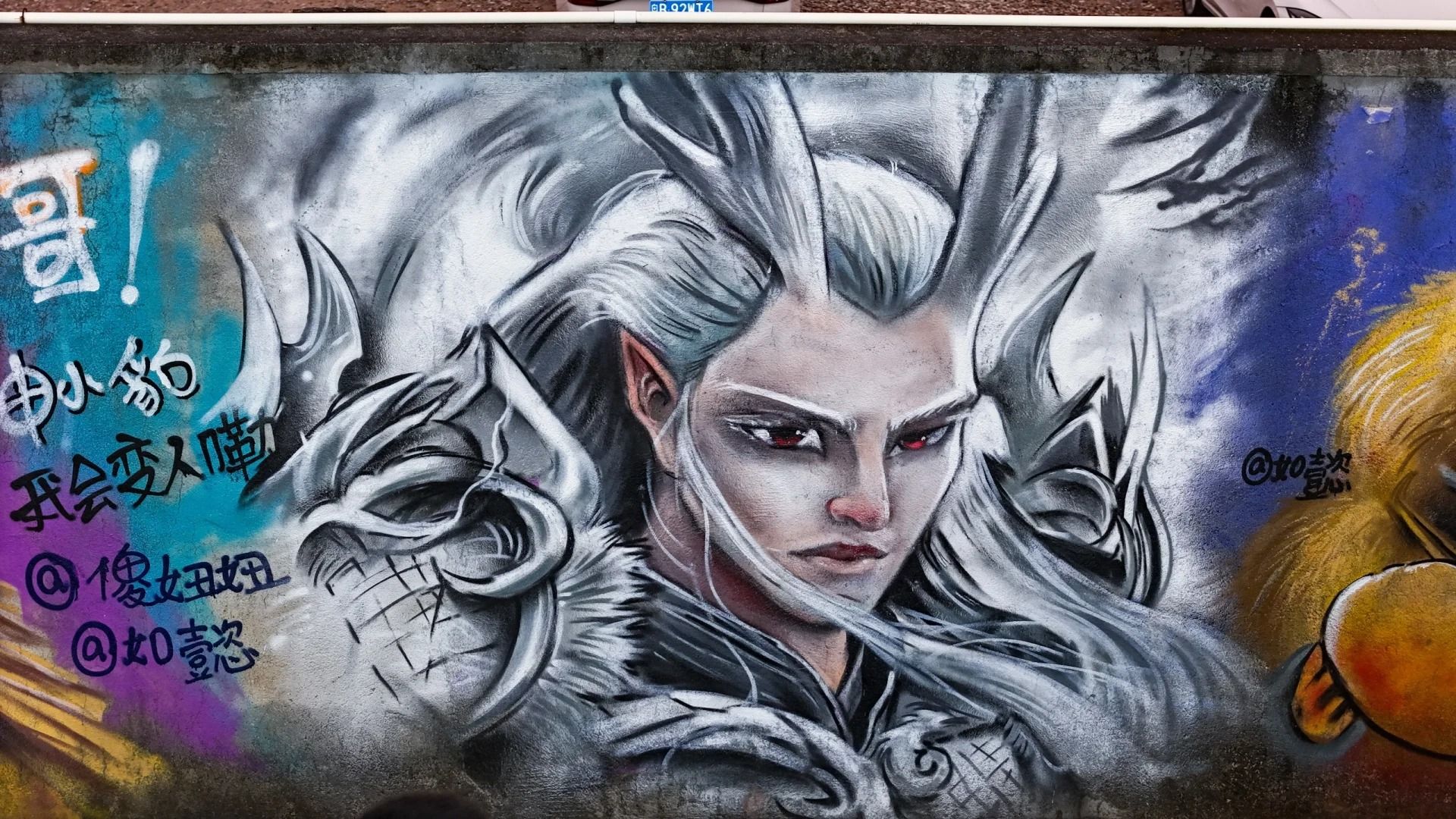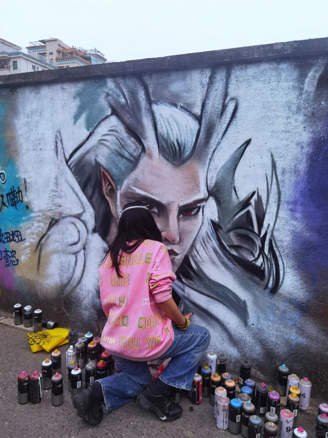這幅哪咤主題塗鴉位於龍華區上芬社區西頭瓜地新村,這幅壁畫高 2 米、寬約 20 米,由「00 後」的彭丹和她的兩位朋友花了大約 3 日共同創作而成,2 月 15 日完成,她們都是戲迷,2月頭成功申請後便著手繪畫。