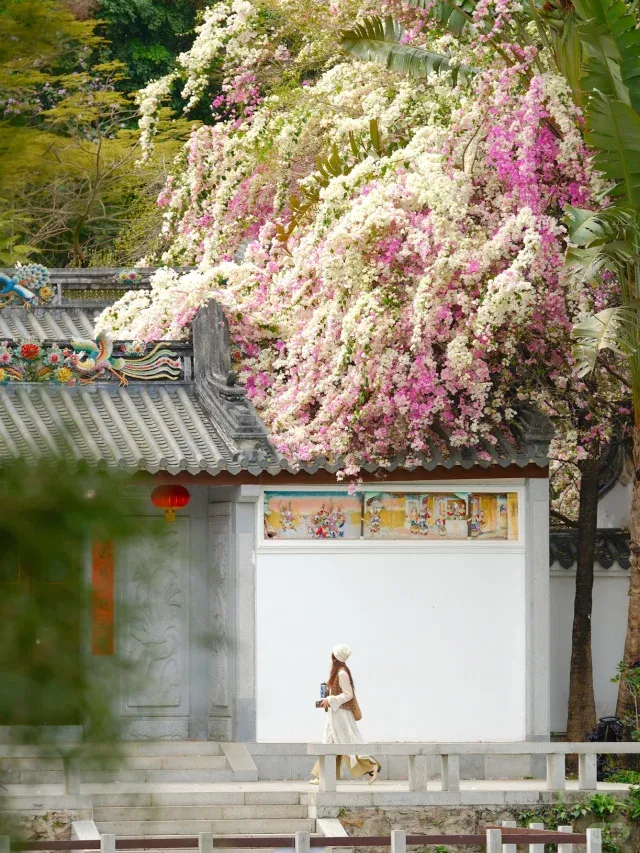觀賞三角梅的一個熱門地點,是壯觀的「三角梅瀑布樹」聞名的深圳園博園,園內的三角梅現正盛放中,加上中式庭園背景,畫面真是超美。加上門票是免費的,港人北上福田玩,不妨去看看花、打打卡。
