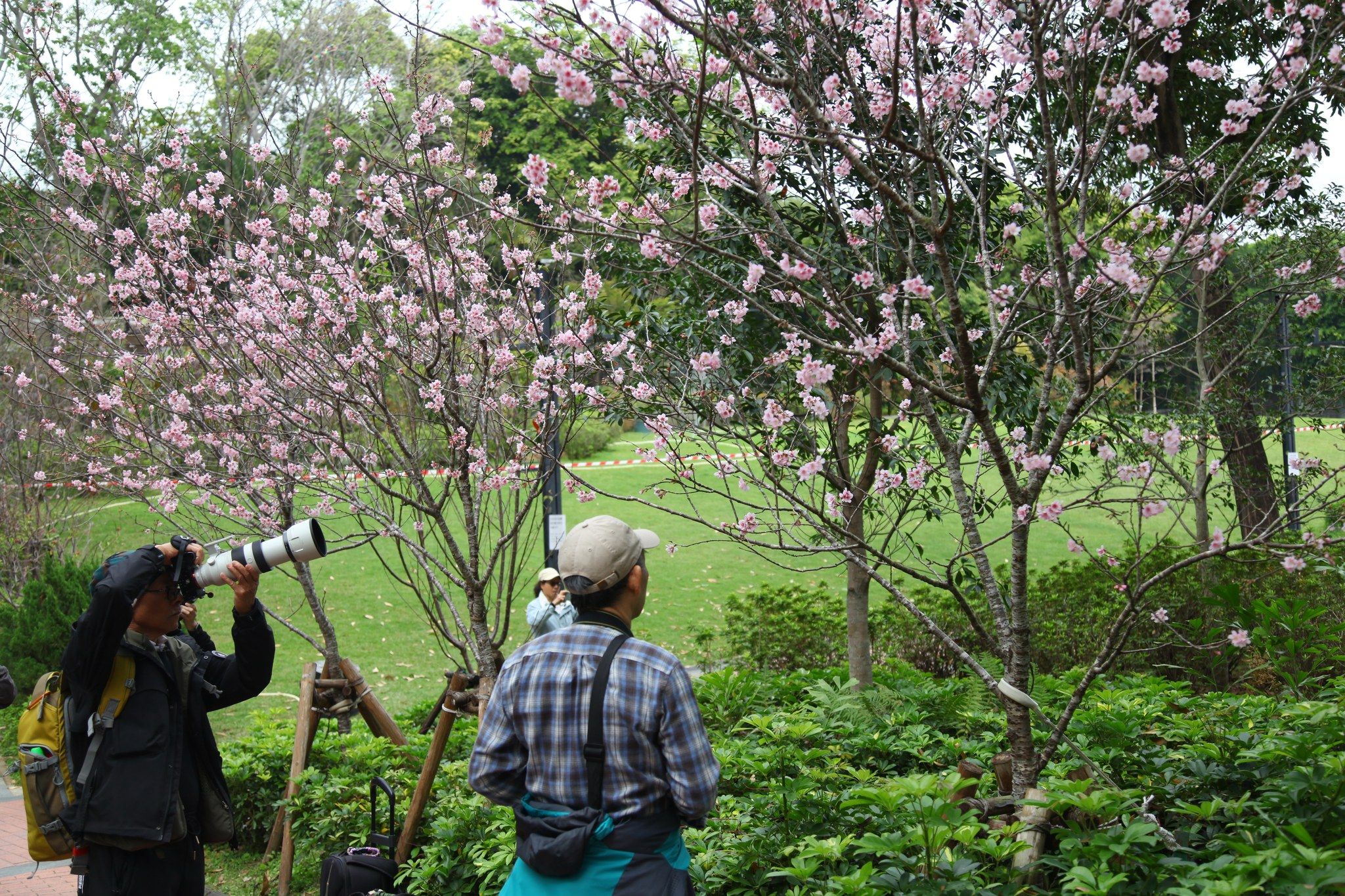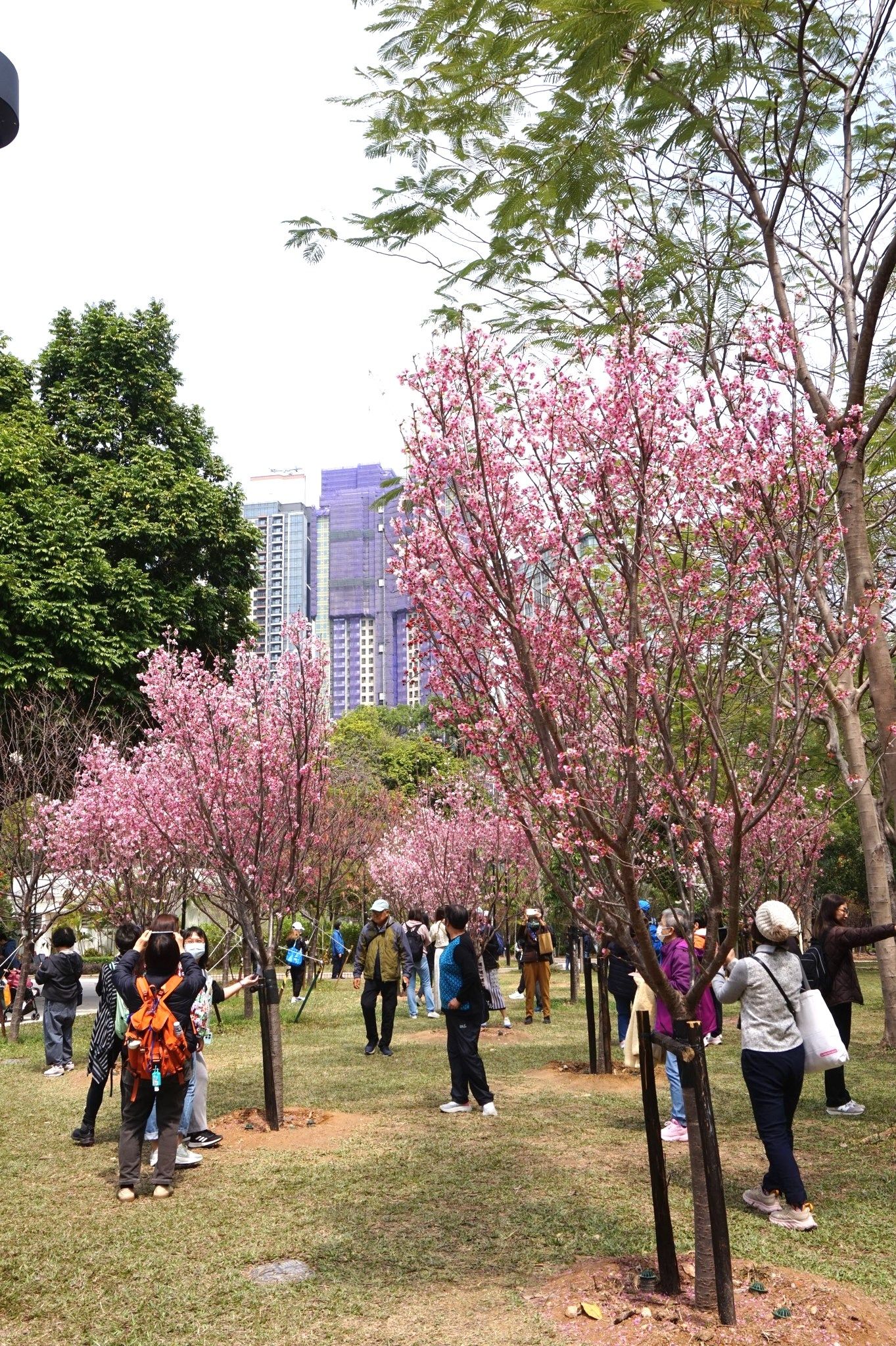 天水圍公園櫻花園內約有 30 棵櫻花,這幾天也開花了,櫻花樹不多,但勝在集中在路徑兩旁、樹也不高,也有一種洲府枝垂櫻,櫻花垂下,非常容易影。