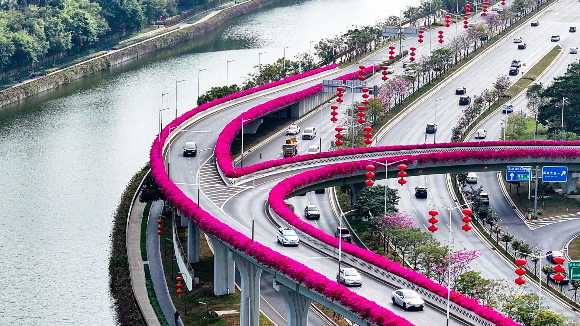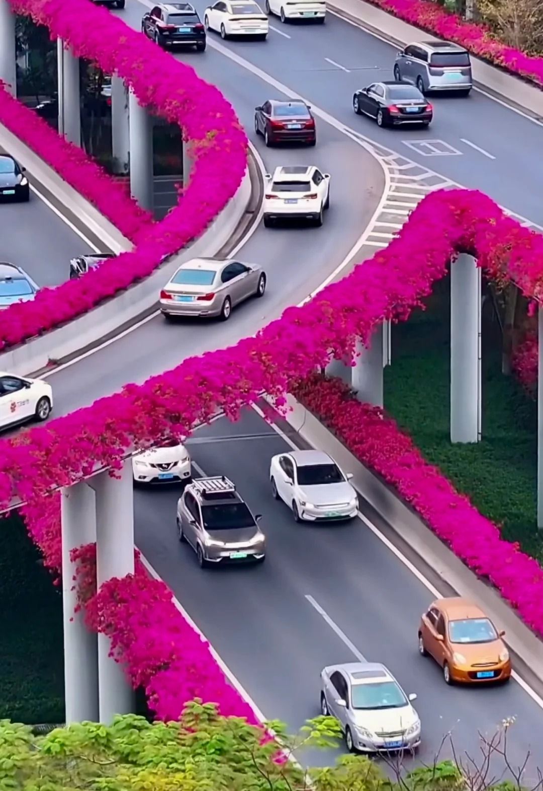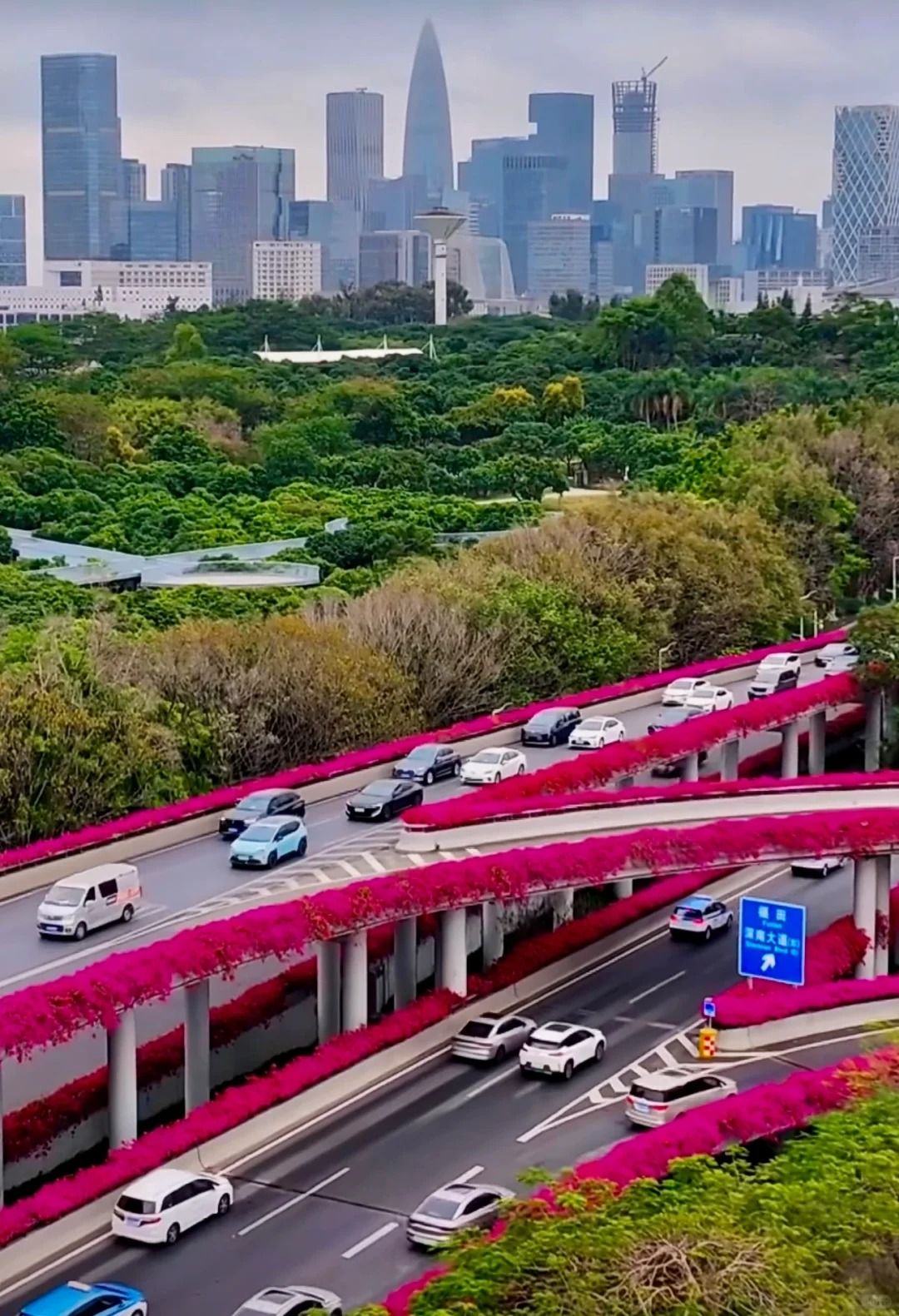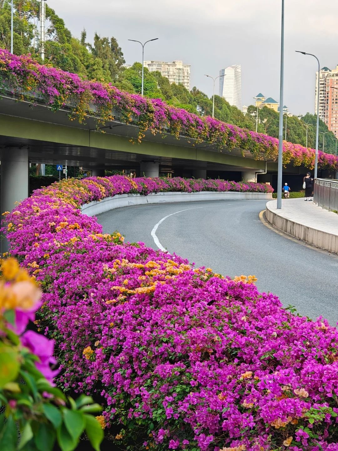 🔸深南沙河立交橋還引入了自動微噴灌和滴灌系統,精準調控花期,令簕杜鵑四季常綠、三季有花