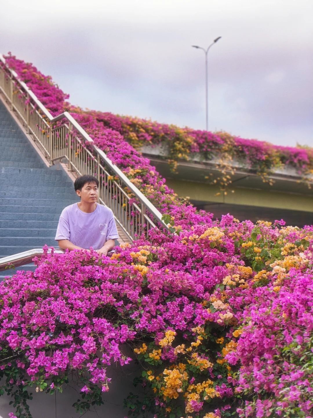 🔸簕杜鵑花枝沿著橋體蜿蜒生長,形成了一條條「空中花廊」
