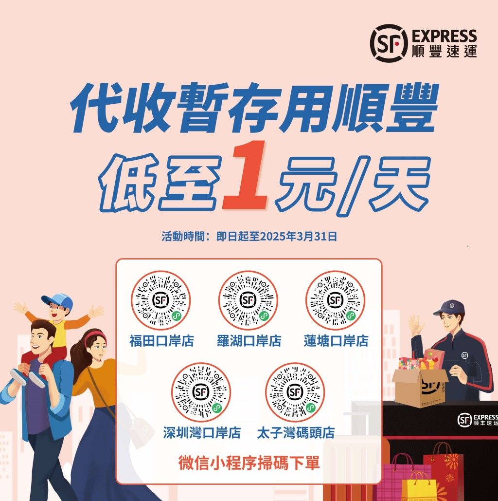 由3月31日開始,順豐速運在5個深圳口岸:福田、蓮塘、羅湖、深圳灣及太子灣頭的門市提供代收寄存服務,價錢還低至¥5日,下次在深圳失手買到一揪二掕、論論盡盡,不妨考慮使用這服務。