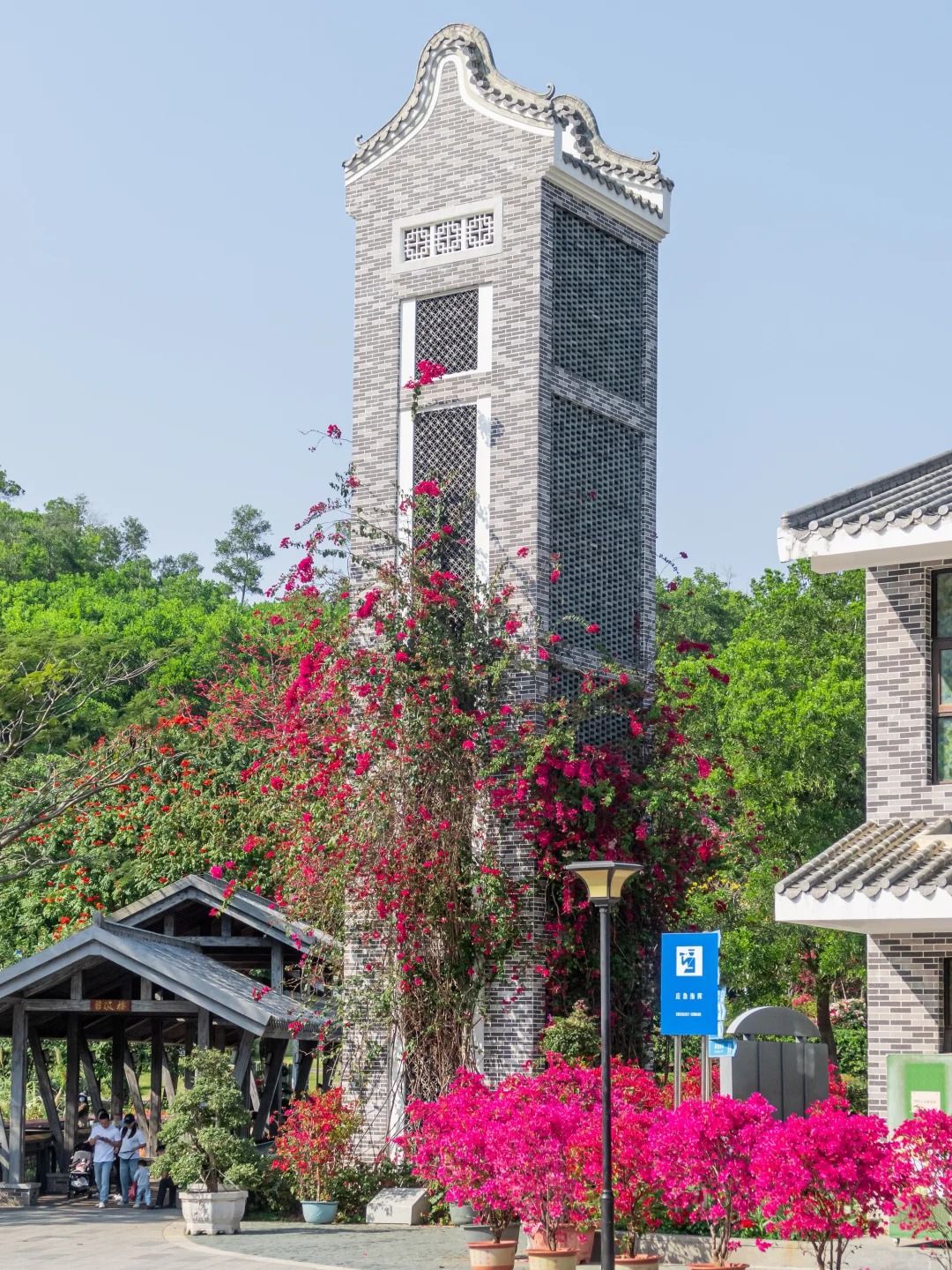 3️⃣濕地島嶼|小溪兩旁全是簕杜鵑,還有碧波橋、嶺南風碉樓、石階等,影出更有層感。