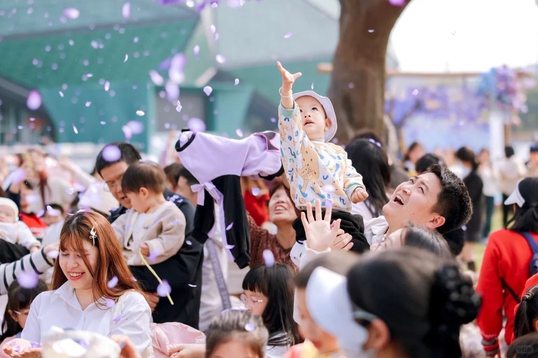 於中央廣場的藍花楹大樹附近,周末 2pm-5pm 會有花瓣雨(具體時間請參考官方社交平台公佈)