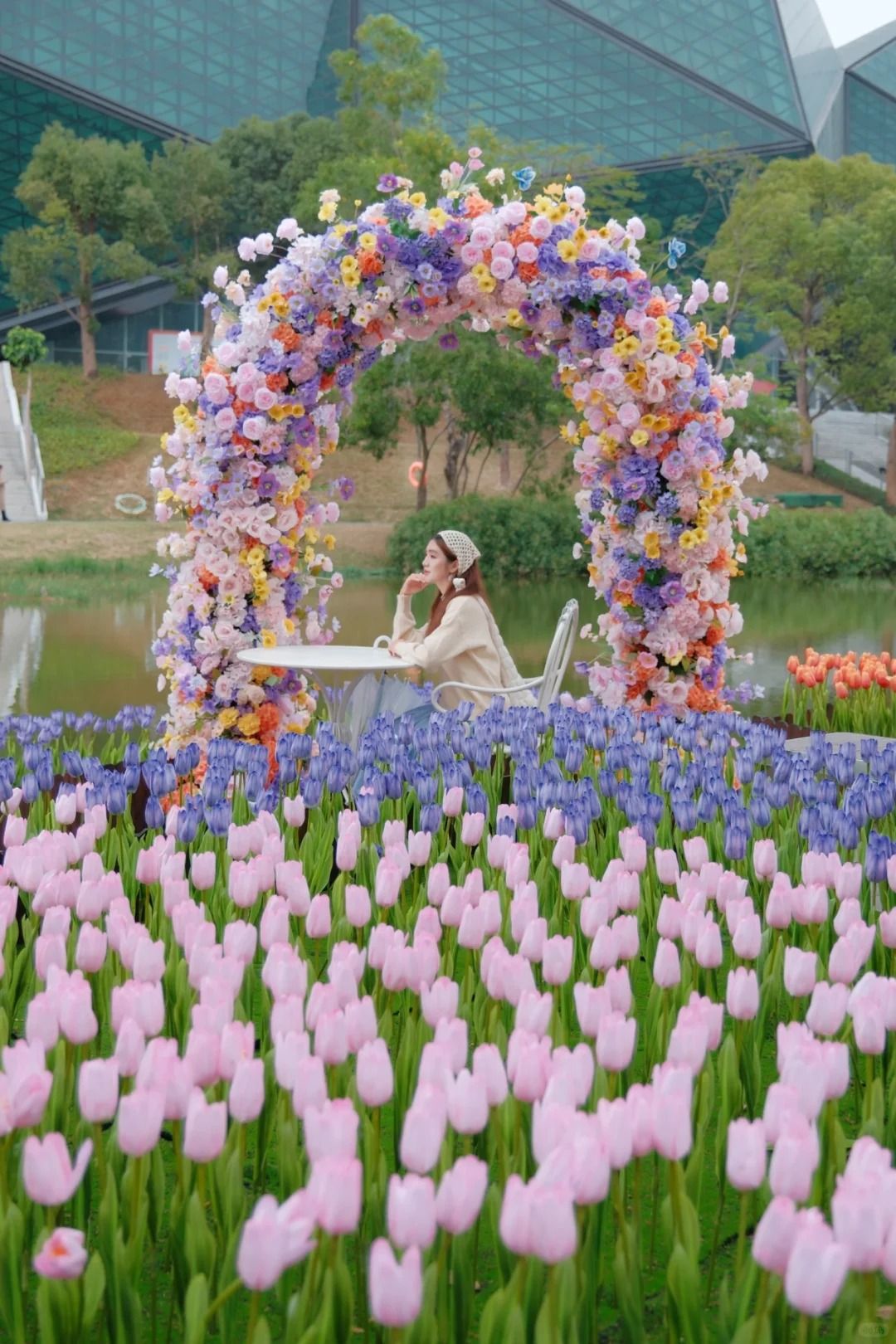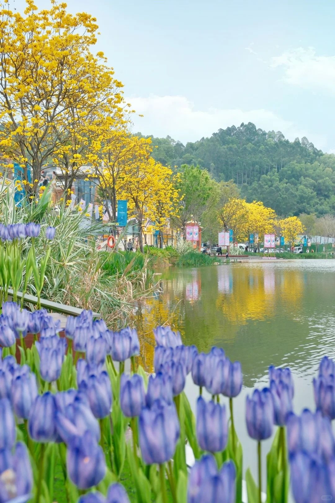 1️⃣ 南區親水平台|「水岸花叢」,在岸邊設置了鬱金香花海