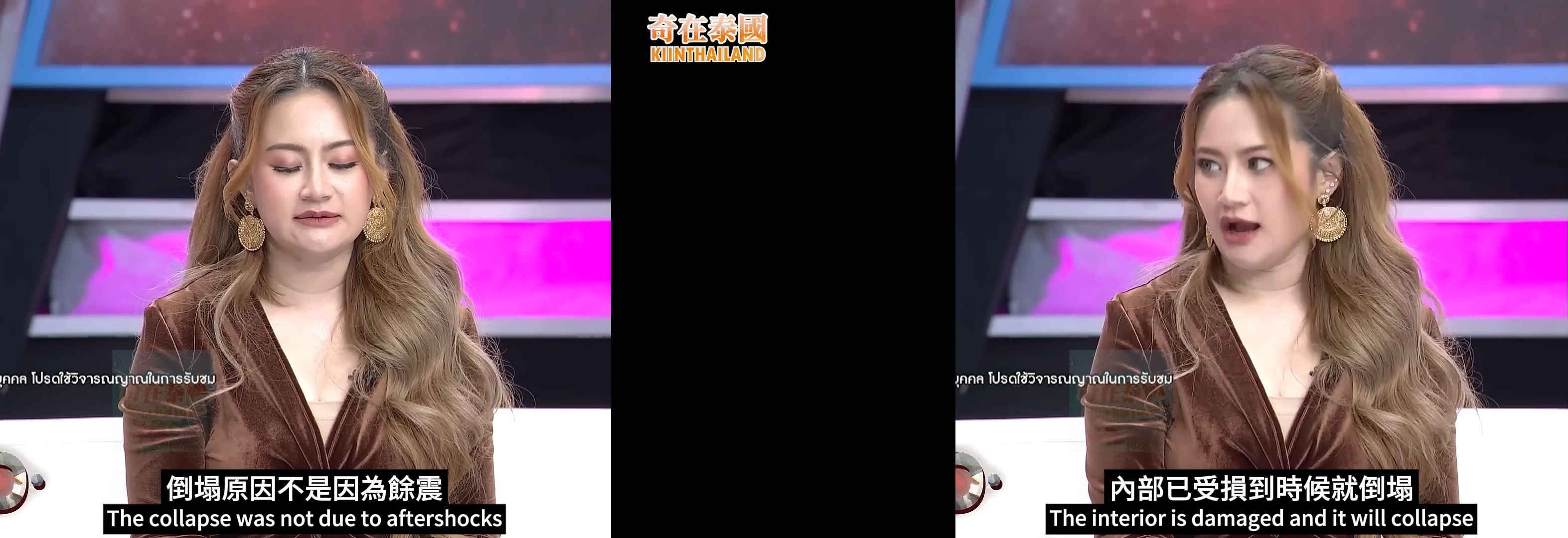 她亦指曼谷會有大樓會倒塌,不過那幢建築物不是人的居所,面積好大,內部空間很空曠。有主持人問是否緬甸地震曼谷受影響時大量民眾逃離的建築物,Plai 師傅則沒有回答。