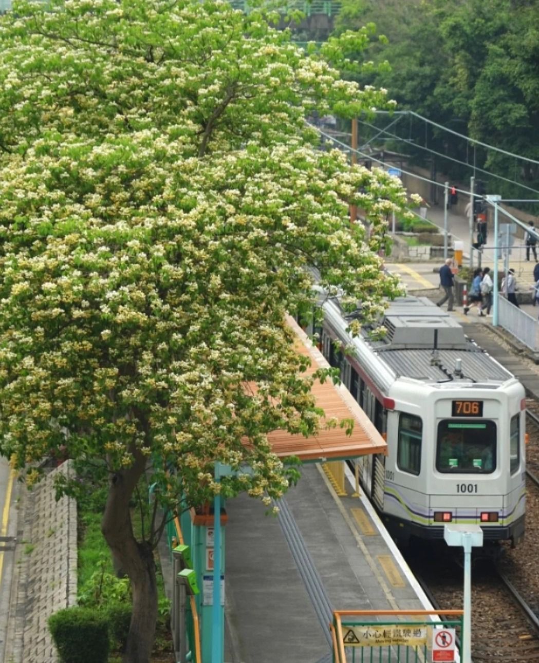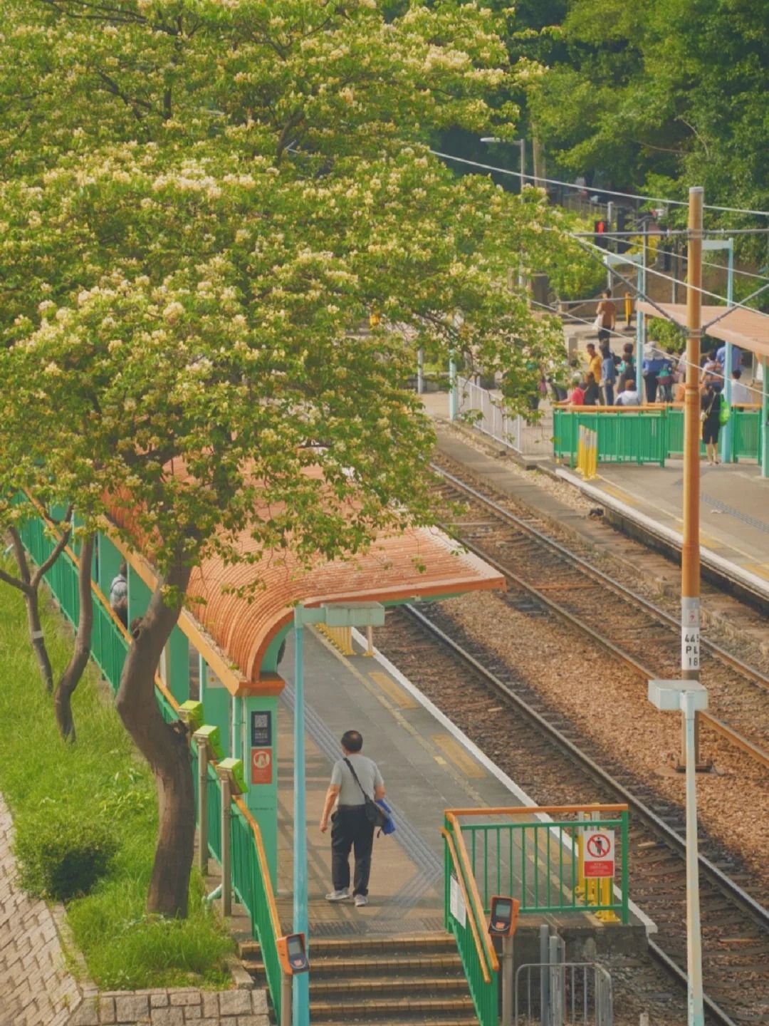 天水圍公園亦是賞魚木花熱點,區內另一熱門賞花地方還有天盛苑巴士站,絮絮的魚木花下有輕鐵做拍攝背景,影出來的相片好日系。