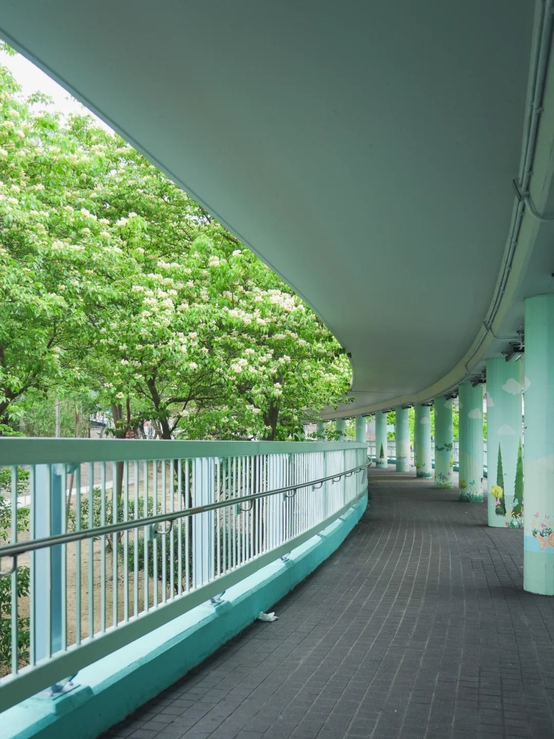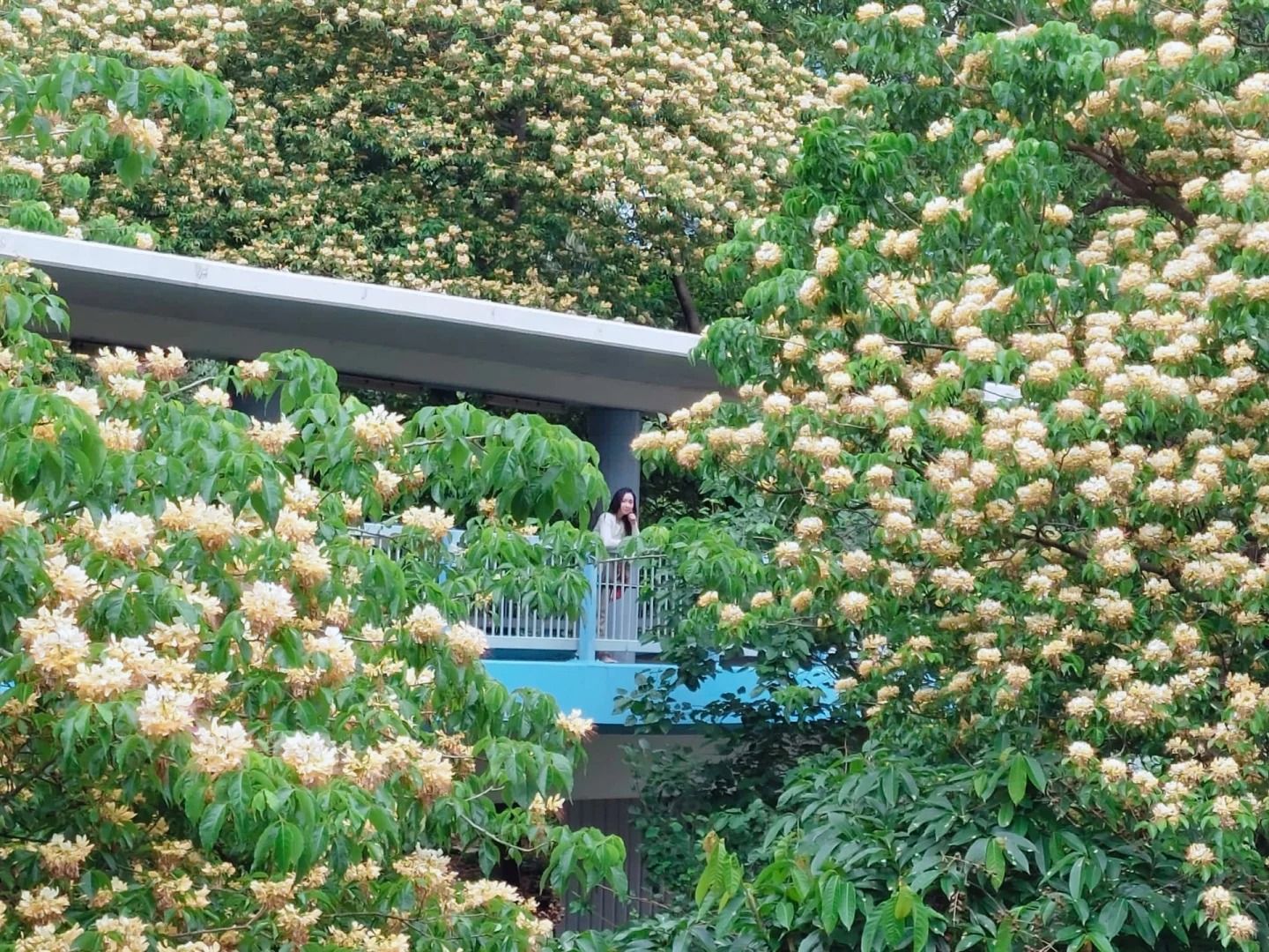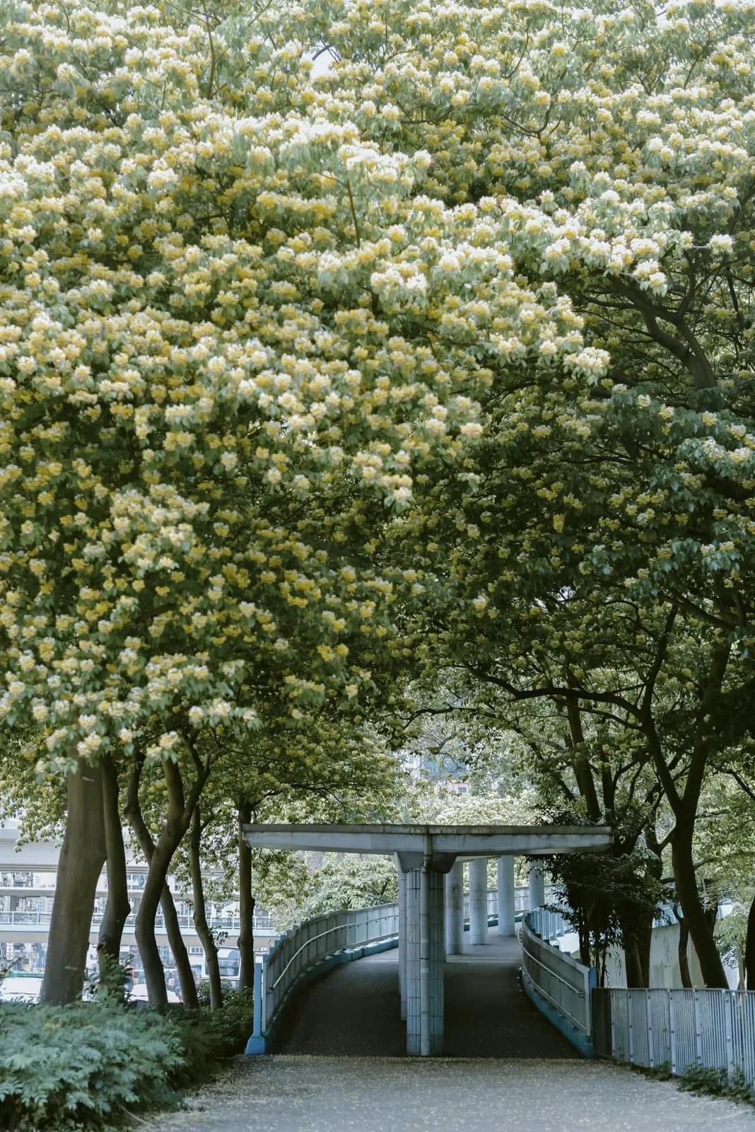 應該是全港最好拍、最澎湃的魚木花海,藍色天橋四周開滿魚木花樹,樹冠極大,魚木花把橋包圍,而量花葉密集,手殘都影到靚相。早上晚上有不同美態,不少人更會待下午4或5時來拍逆花照片
