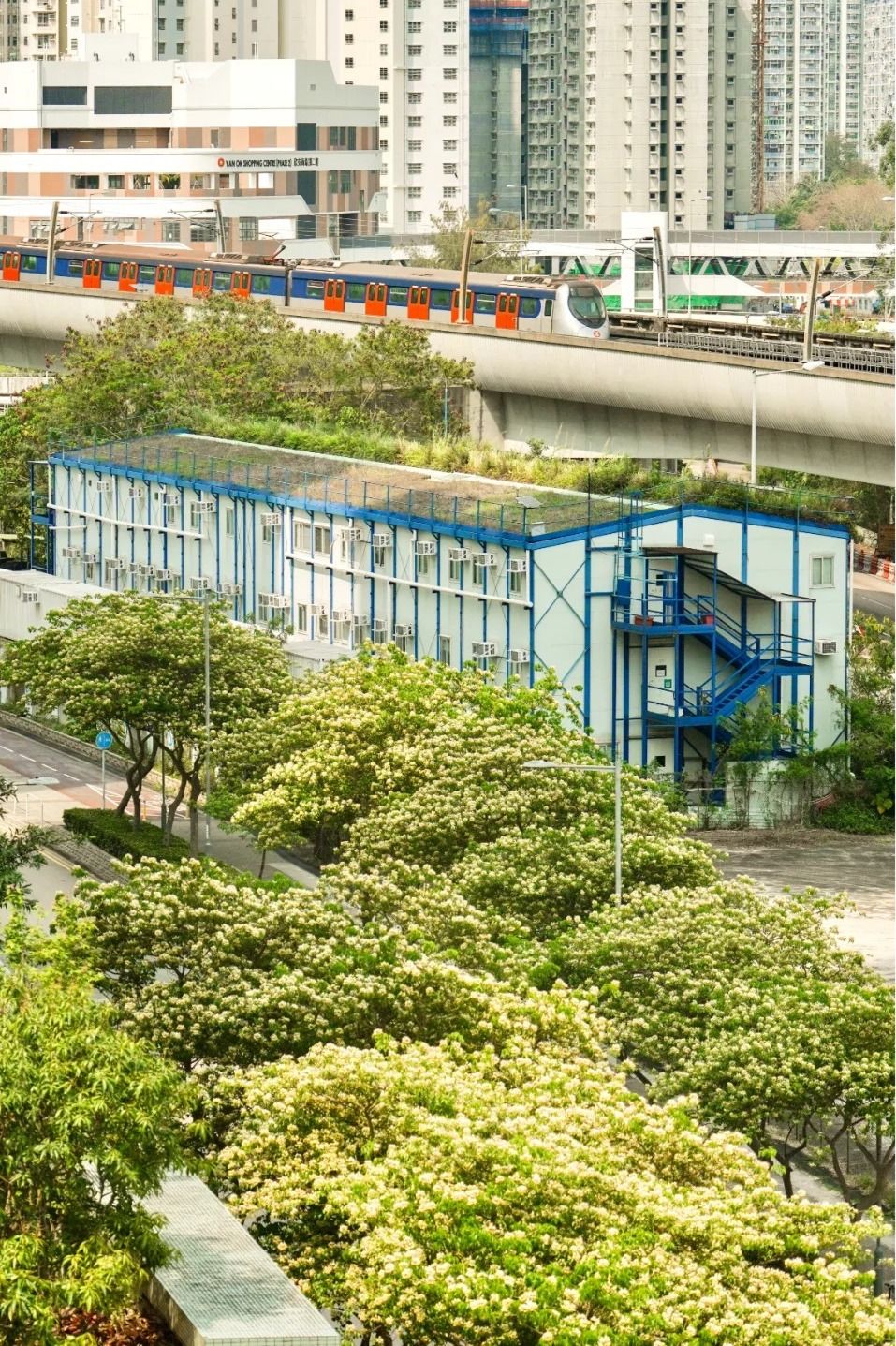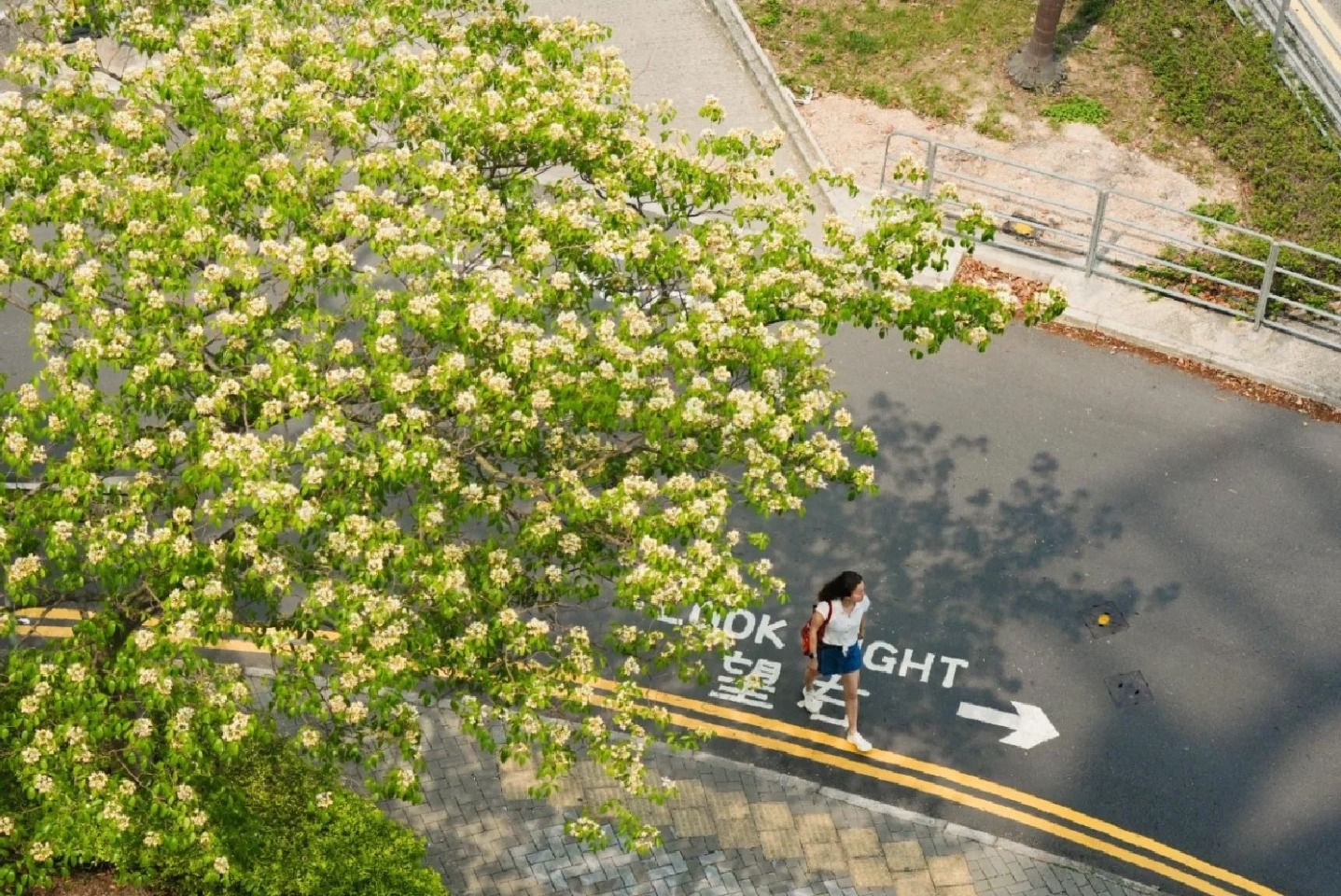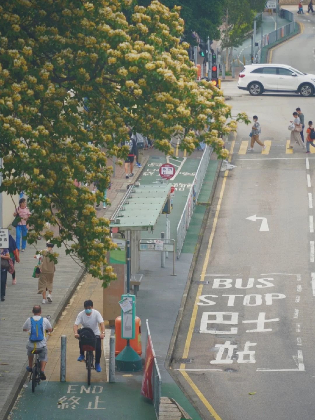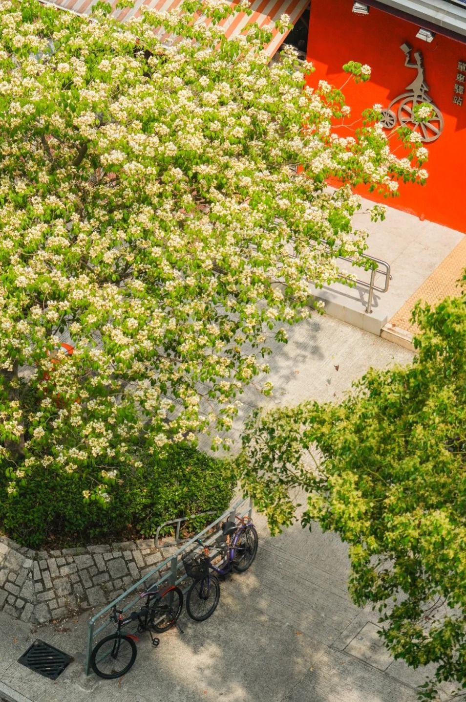 沿路種了不少魚木花樹,拍攝背影有單車徑、屋苑及商場等。