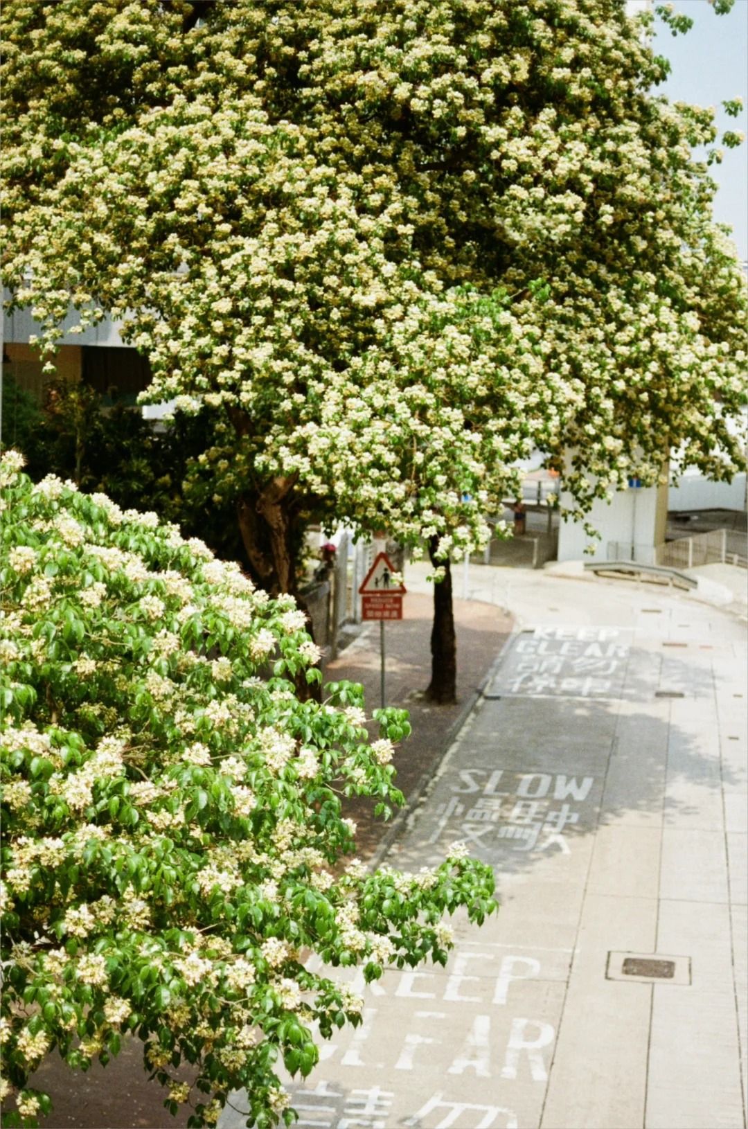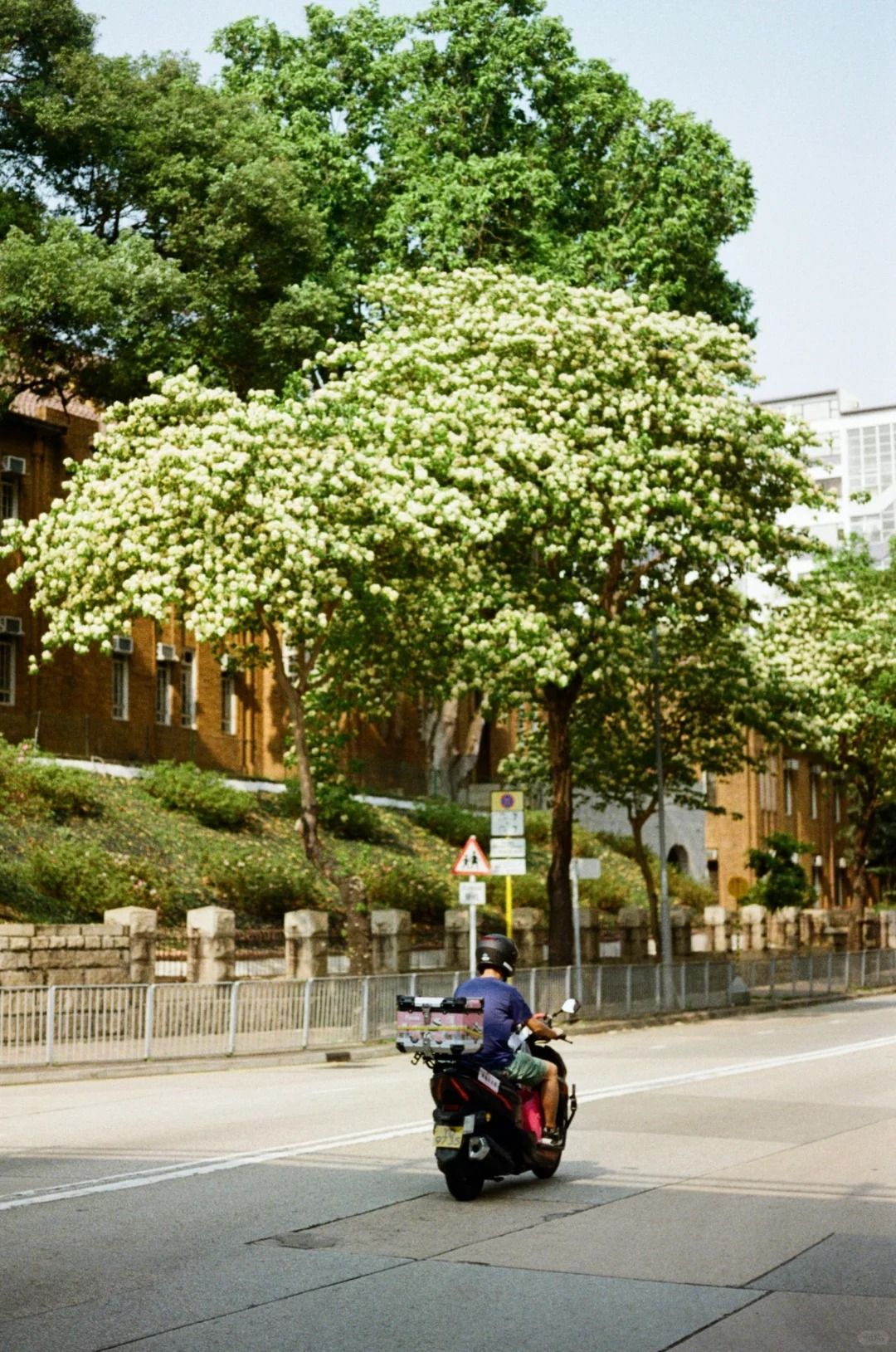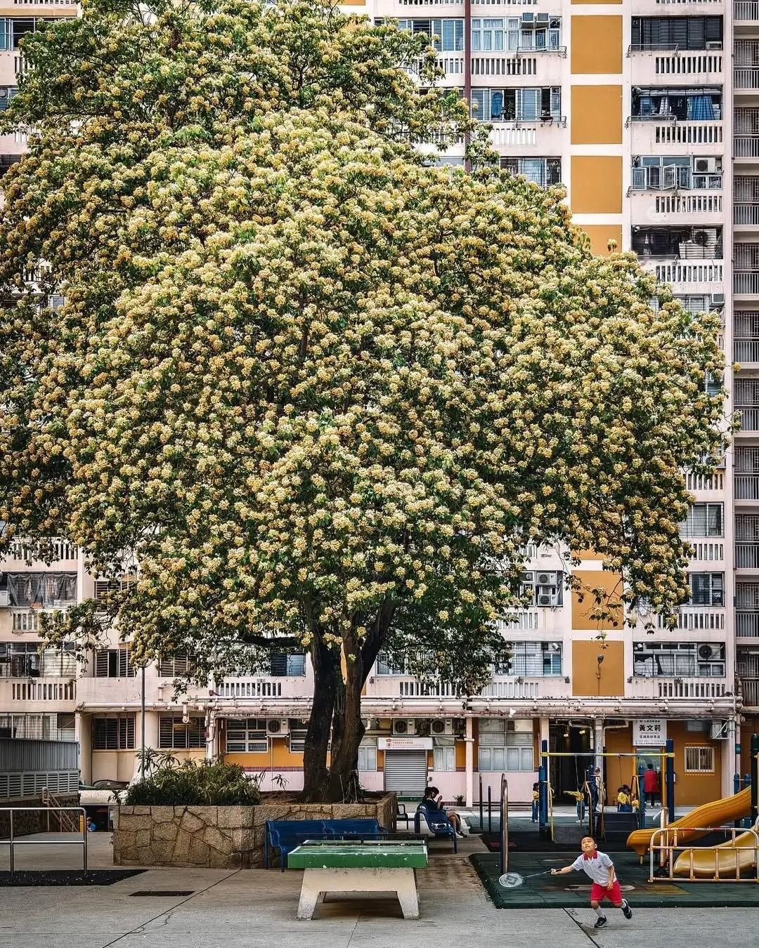 魚木花後有舊式公屋的背景,影出來又有一番香港遺美感覺。