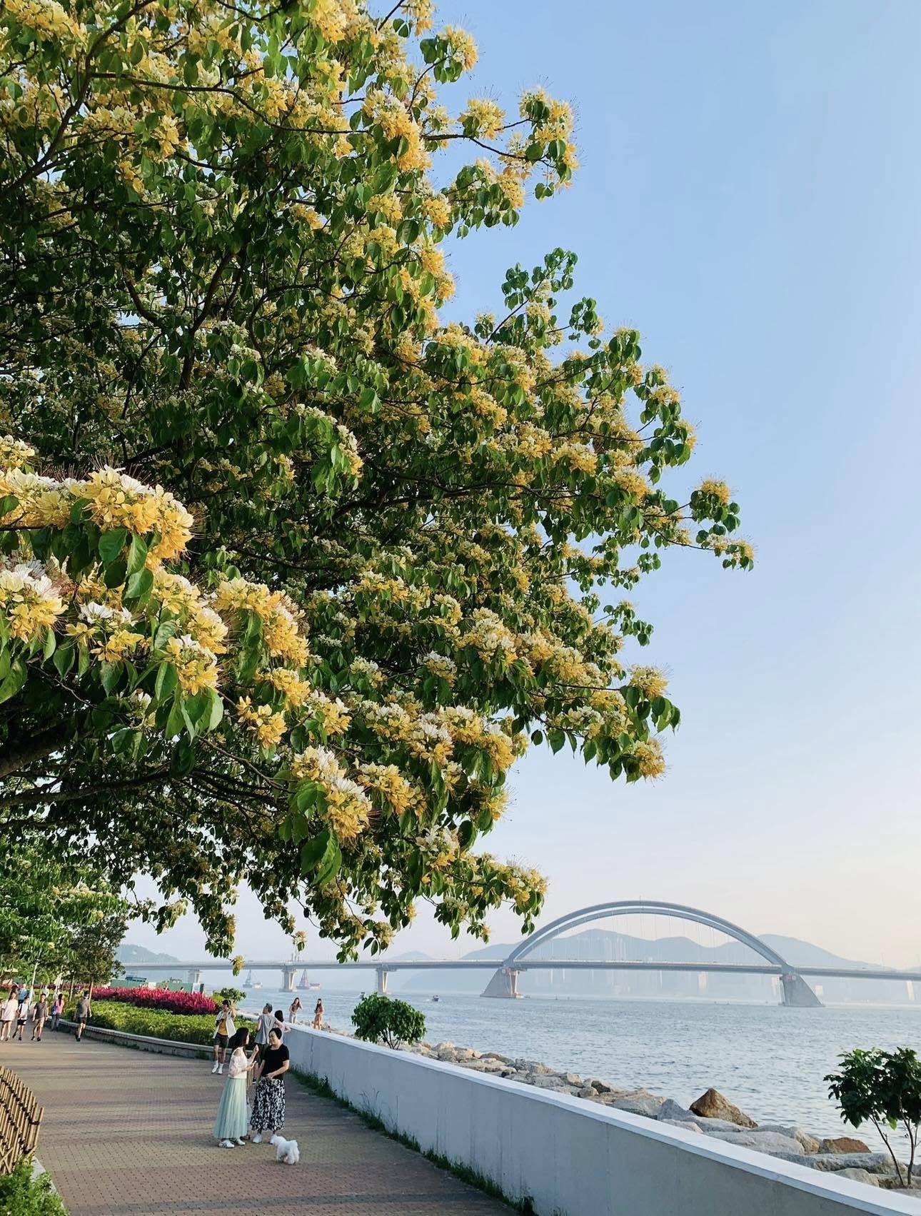 魚木花樹不算好多,不過現已盛放,背後有海景及將南大橋。