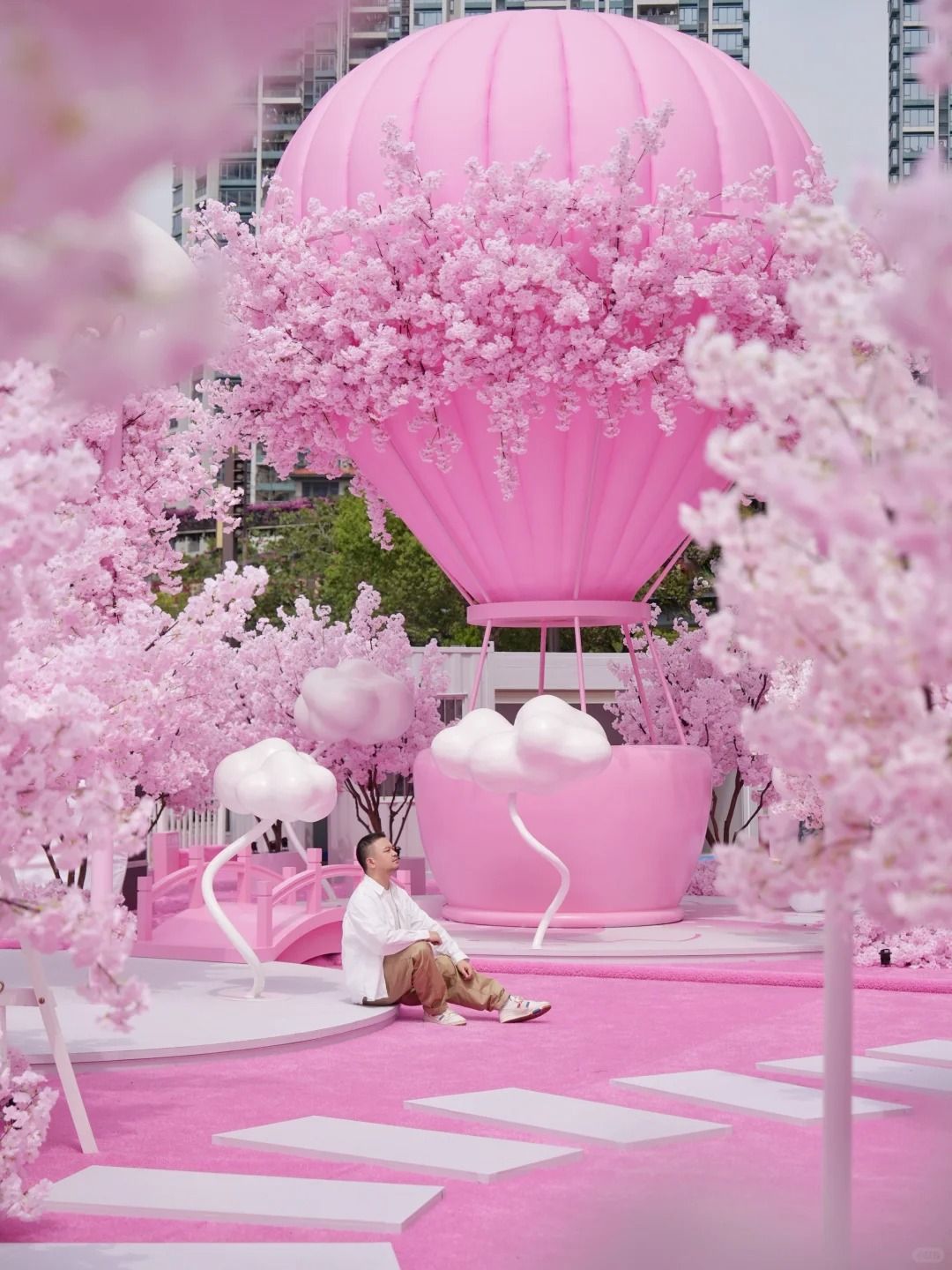 巨型粉色熱氣球超浪漫!被櫻花簇擁,是場內最大影的拍照地點。