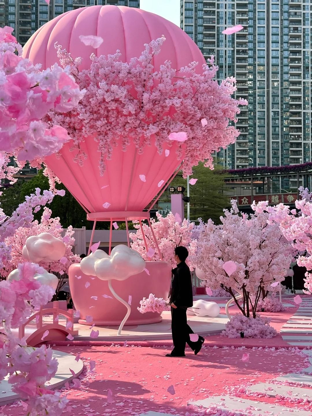 復活節北上|龍崗區商場櫻花大道🌸 5大靚位:櫻花電話亭☎️/雲朵櫻花雨/粉紅熱氣球 4.10開放
