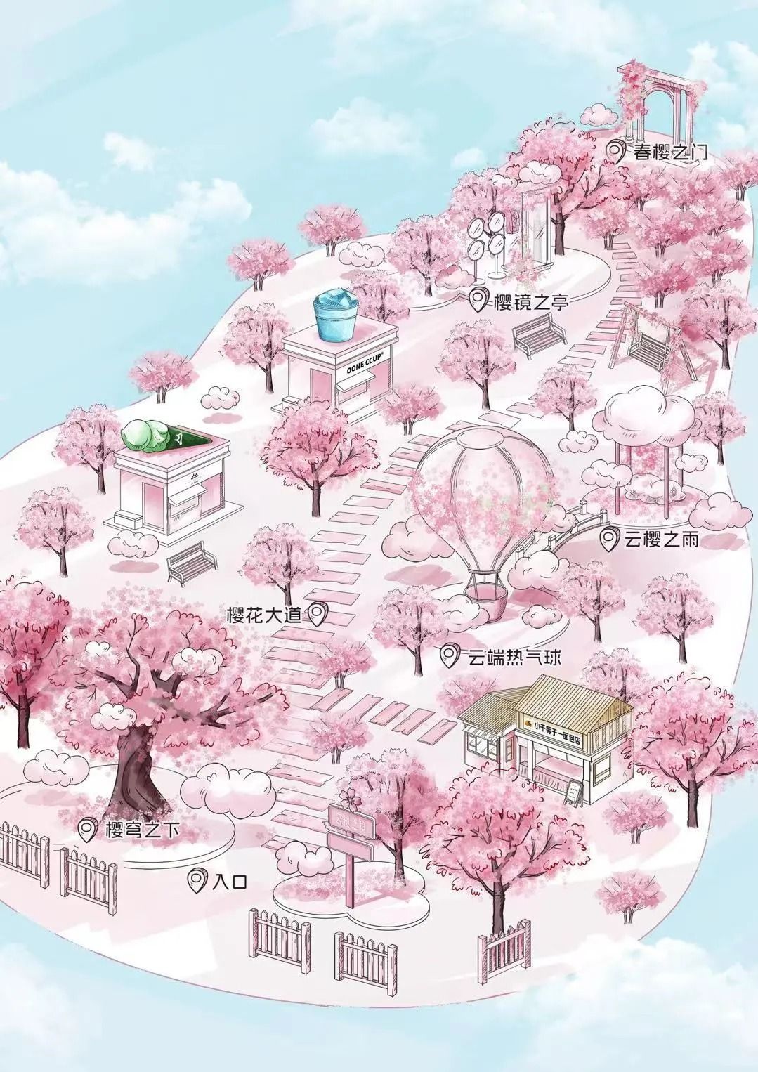 以白色雲朵作為造型雲櫻之雨,雲朵下方還有密密的櫻花,可以拍出櫻花雨效果。☎️ 櫻鏡之亭