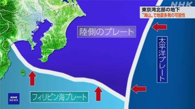 東京都防災會議已於2022年公布最新災害預測指未來30年內發生M7級以上「首都直下型地震」的機率達70%,由2000年至今,東京灣北部發生了8000次地震,NHK(日本放送協會)最新報道東京科學大學團隊研究發現東京灣下發現密集的「海底山」,形成一個「地震巢穴」,或是引發該區頻密地震的原因,隨着「海底山」沉入板塊,會積累「應力」,若該地區發生M7級以上地震,將出現首都直下地震,屆時東京23區將遭受震度6強至7的地震。