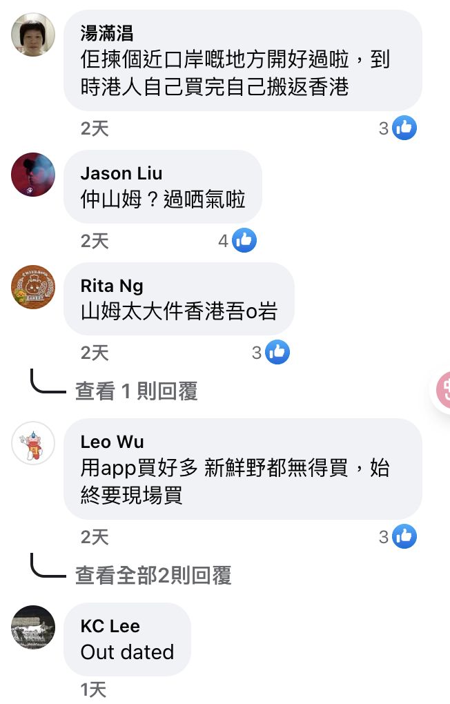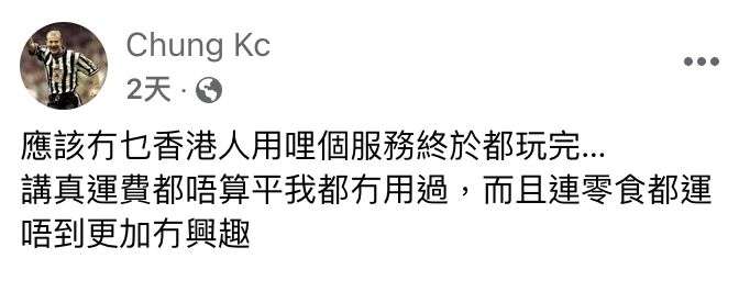💬「應該冇乜香港人用哩個服務終於都玩完…講真運費都唔算平我都冇用過,而且連零食都運唔到更加冇興趣」