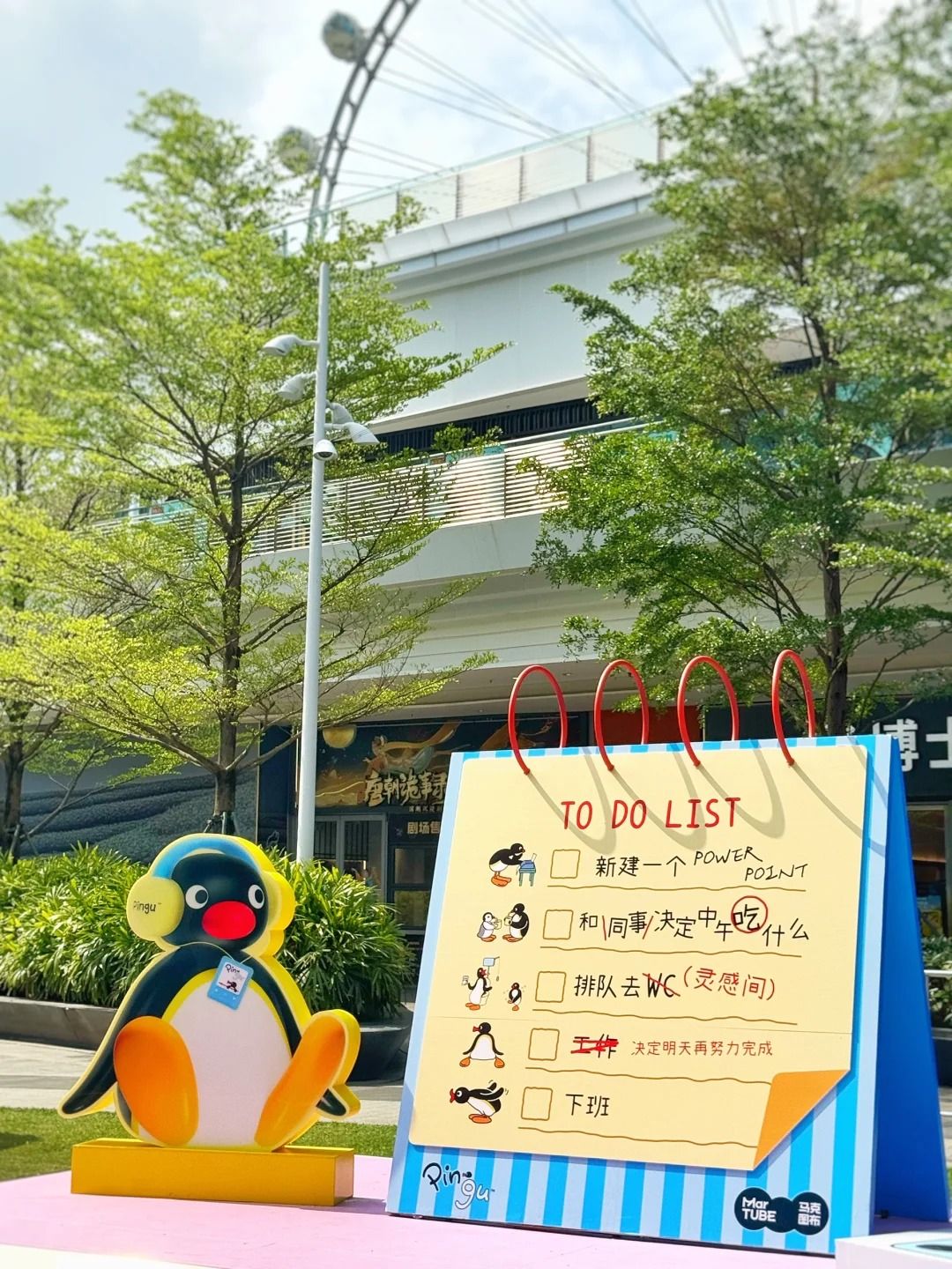 3️⃣ 互動體驗區:巨型 Pingu 旁還有互動體驗區📸,設置了「職場黑話打卡牆」💼和「盒子打工車間」📦等互動區域,遊客可以在這裡拍照打卡🤳