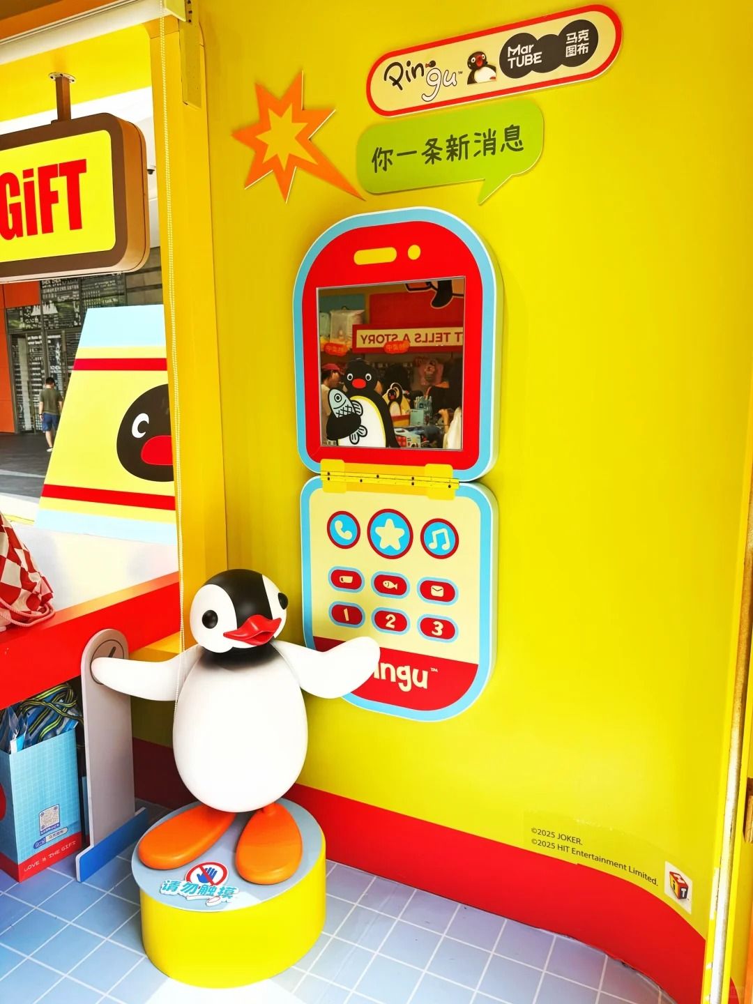 2️⃣ Pingu 主題快閃店:在巨型Pingu對面有個彩色小盒子🌈,它是一間快閃店🛍️,店內有不少Pingu 周邊產品發售,如毛公仔🧸、文具✏️、服飾👕等。
