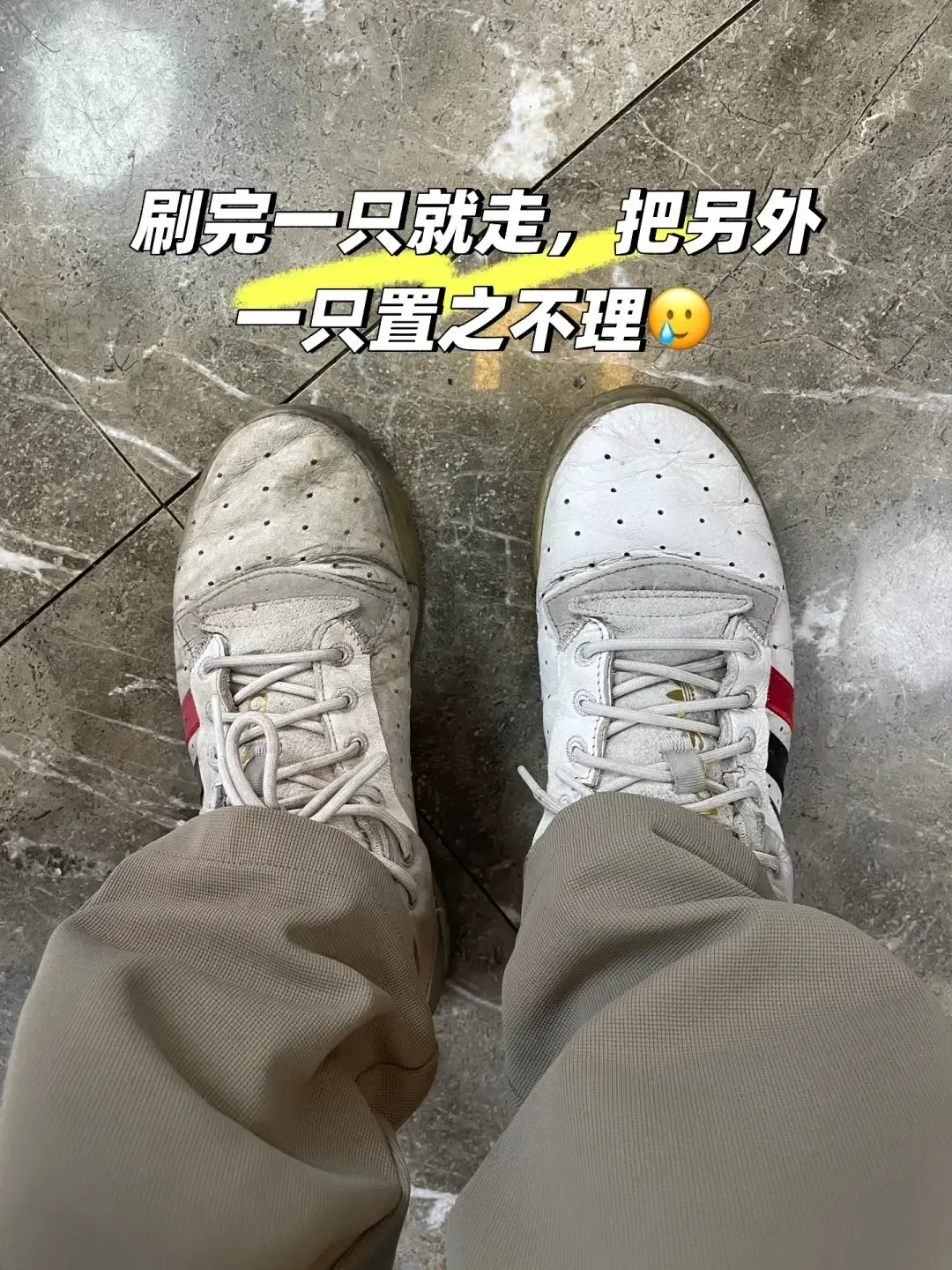3️⃣ 擦了幾下後停手,要你付錢買下手上的鞋子清潔劑