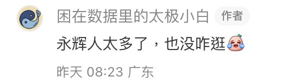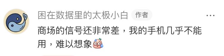 💬「商場的信號還非常差 📵,我的手機幾乎不能用,難以想象」及「永輝人太多了 👥,也沒咋逛」