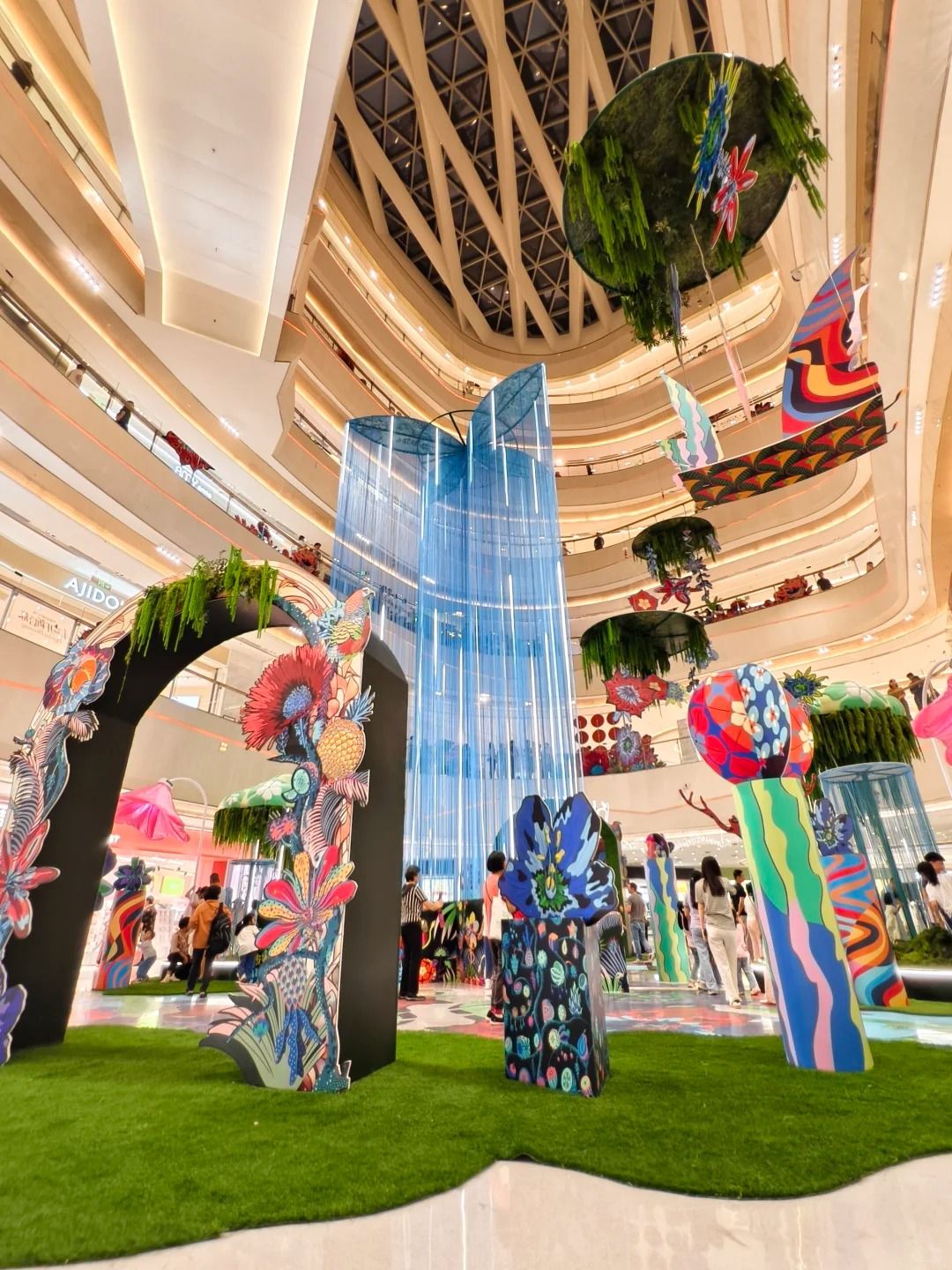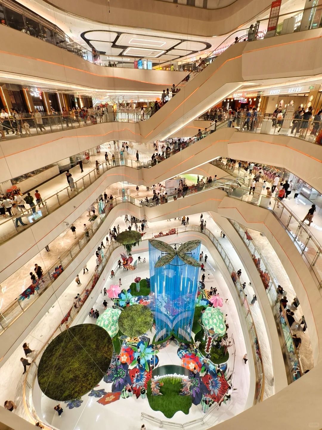 💬「雖然整體面積不算大,環形空間層次感還是挺好逛的 🛒。2樓和1樓的戶外 四季花巷 里彩燈閃耀 ✨,剛好碰到民族特色的開業活動 🎪,氛圍感拉滿。估計五一假期這裡會更熱鬧 🎆。」