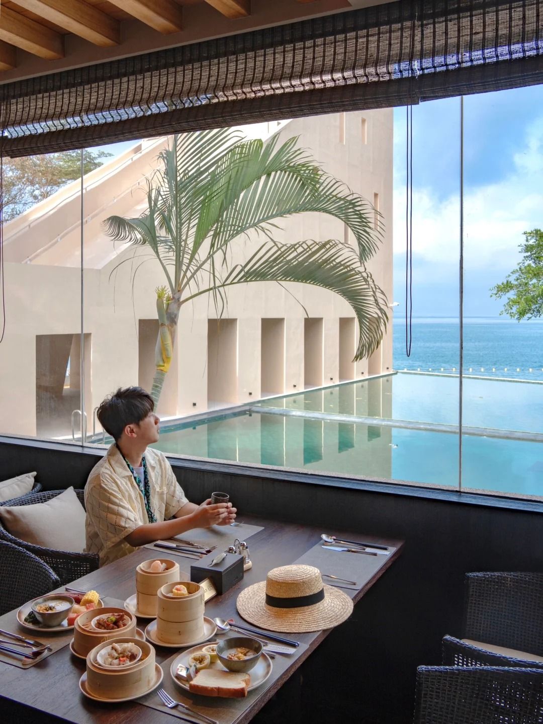 🍽️ 海邊靚景餐廳|設有汐厝中餐廳及拾貝西餐廳2間餐廳,價格實惠(如提供¥6元冰美式咖啡),還有搭配懸崖海景,日落時分尤為浪漫。